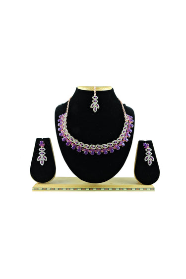 Captivating Purple Color Alloy Necklace With Earrings and Mang Tikka
