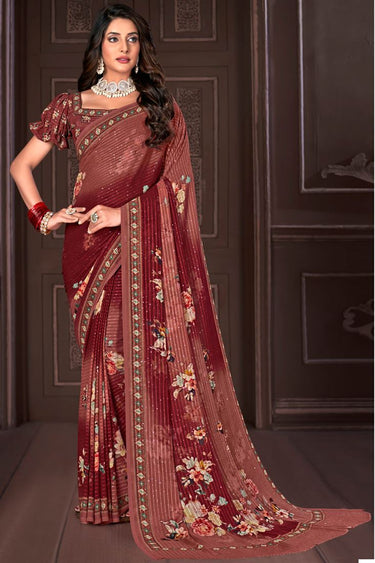 Casual Wear Maroon Color Georgette Fabric Pretty Saree With Blazing Digital Printed Work