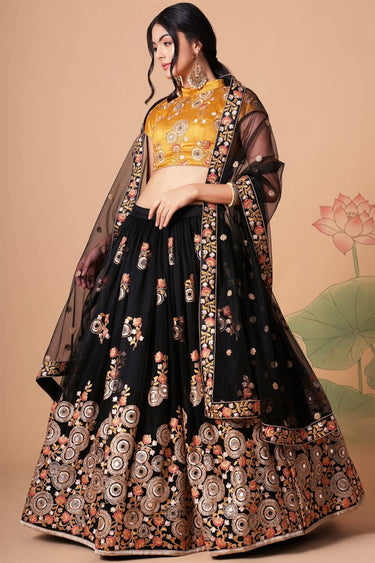 Charming Black Color Net Fabric Lehenga Choli In Sangeet Wear