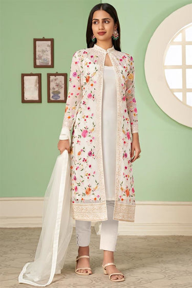 Charming Off White Color Georgette Jacket Style Salwar Suit