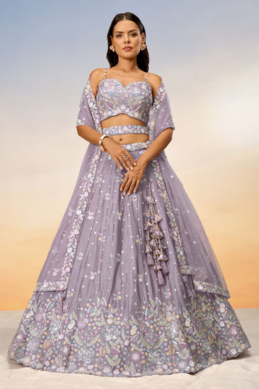 Chiffon Lavender Sequins Work 3 Piece Lehenga With Enthralling Blouse