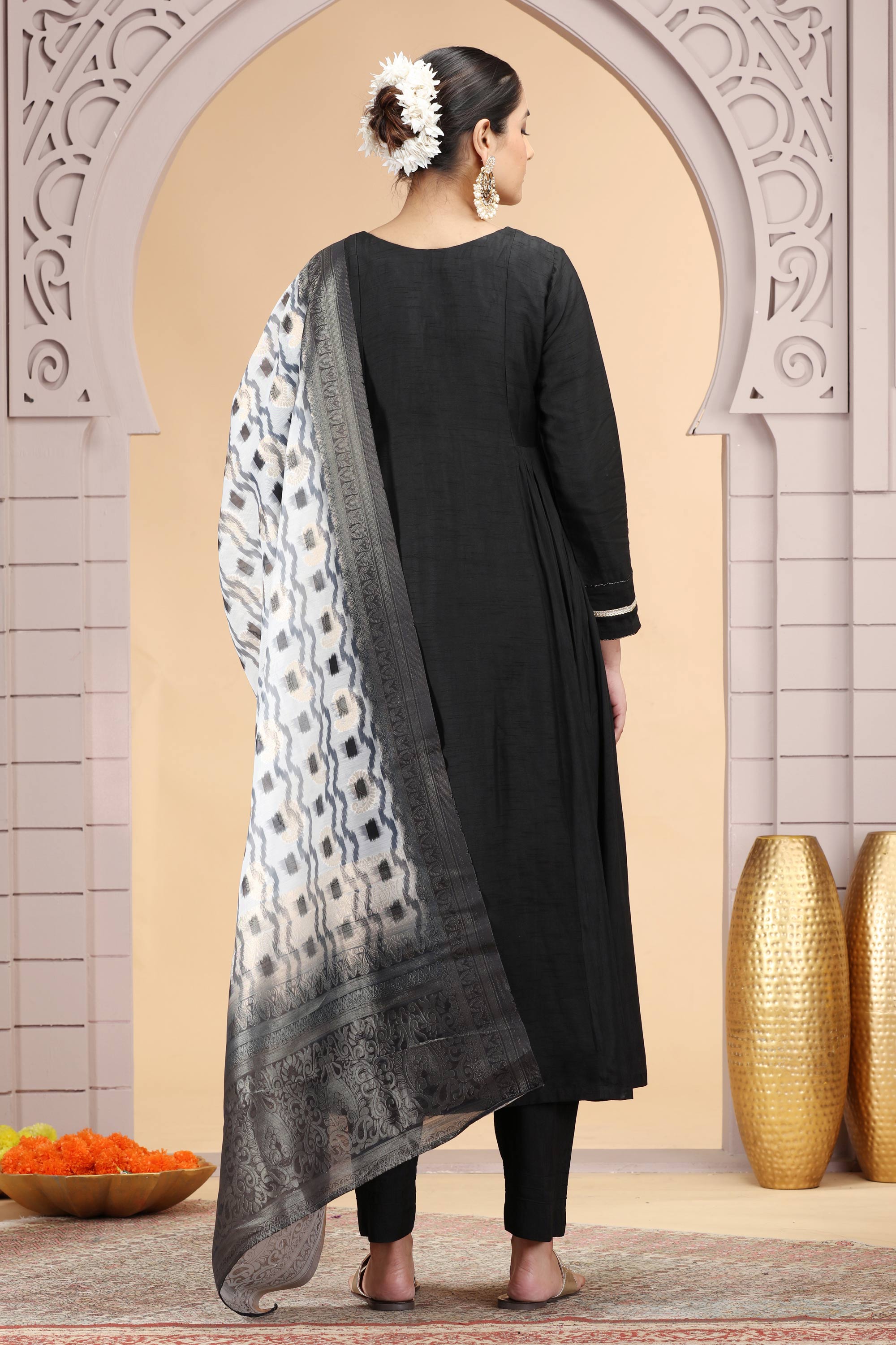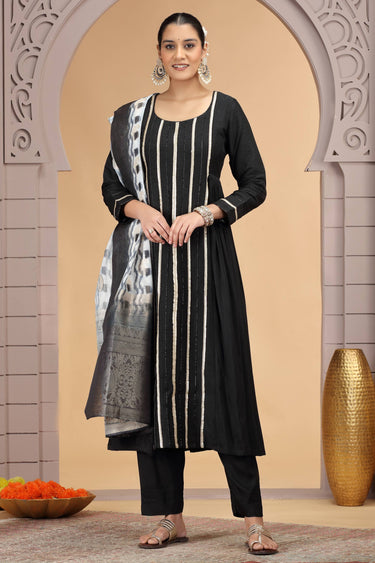 Chiffon Readymade Designer Salwar Suit In Black Color