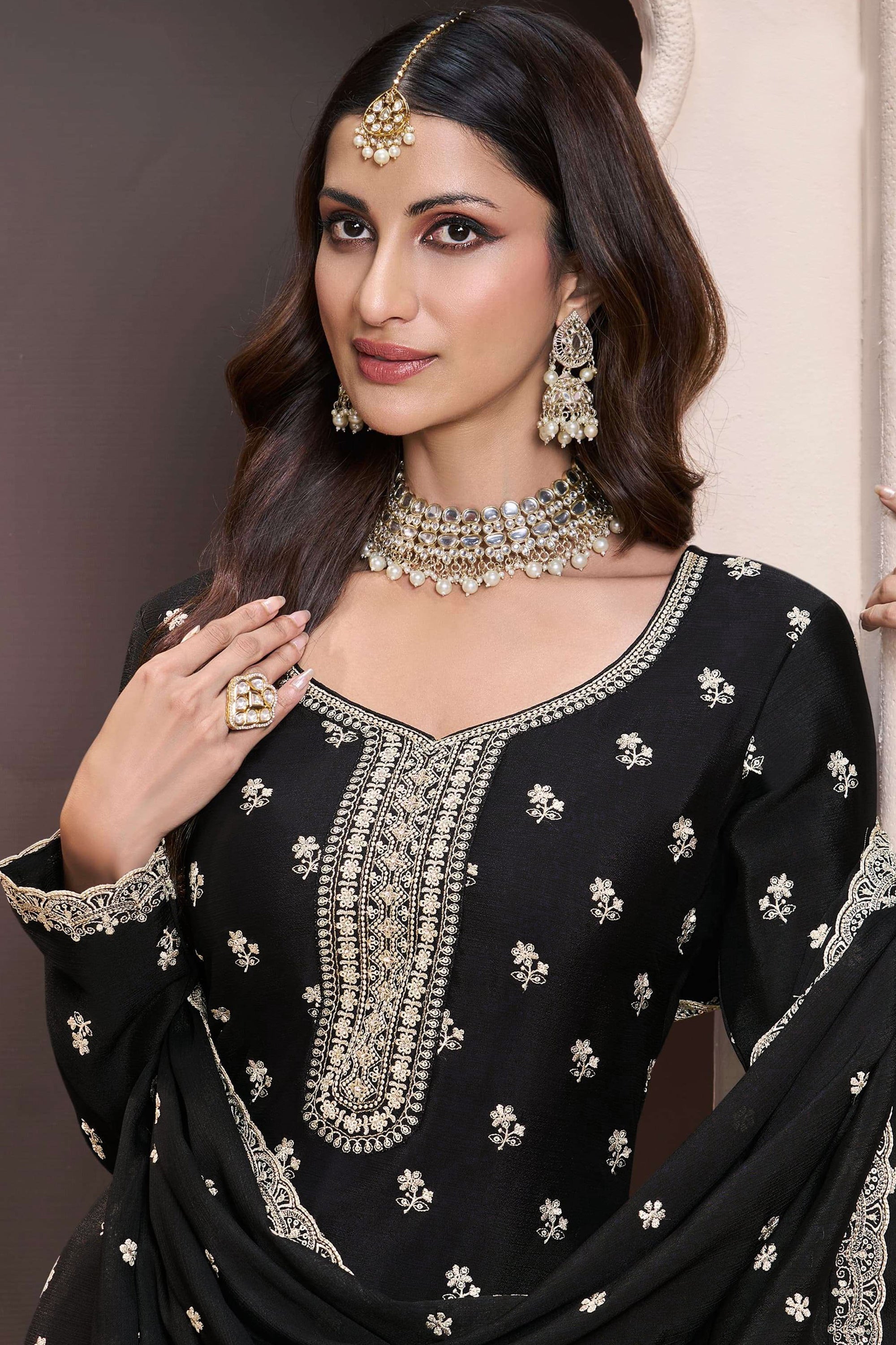 Chinon Black Color Embroidered Readymade Palazzo Dress