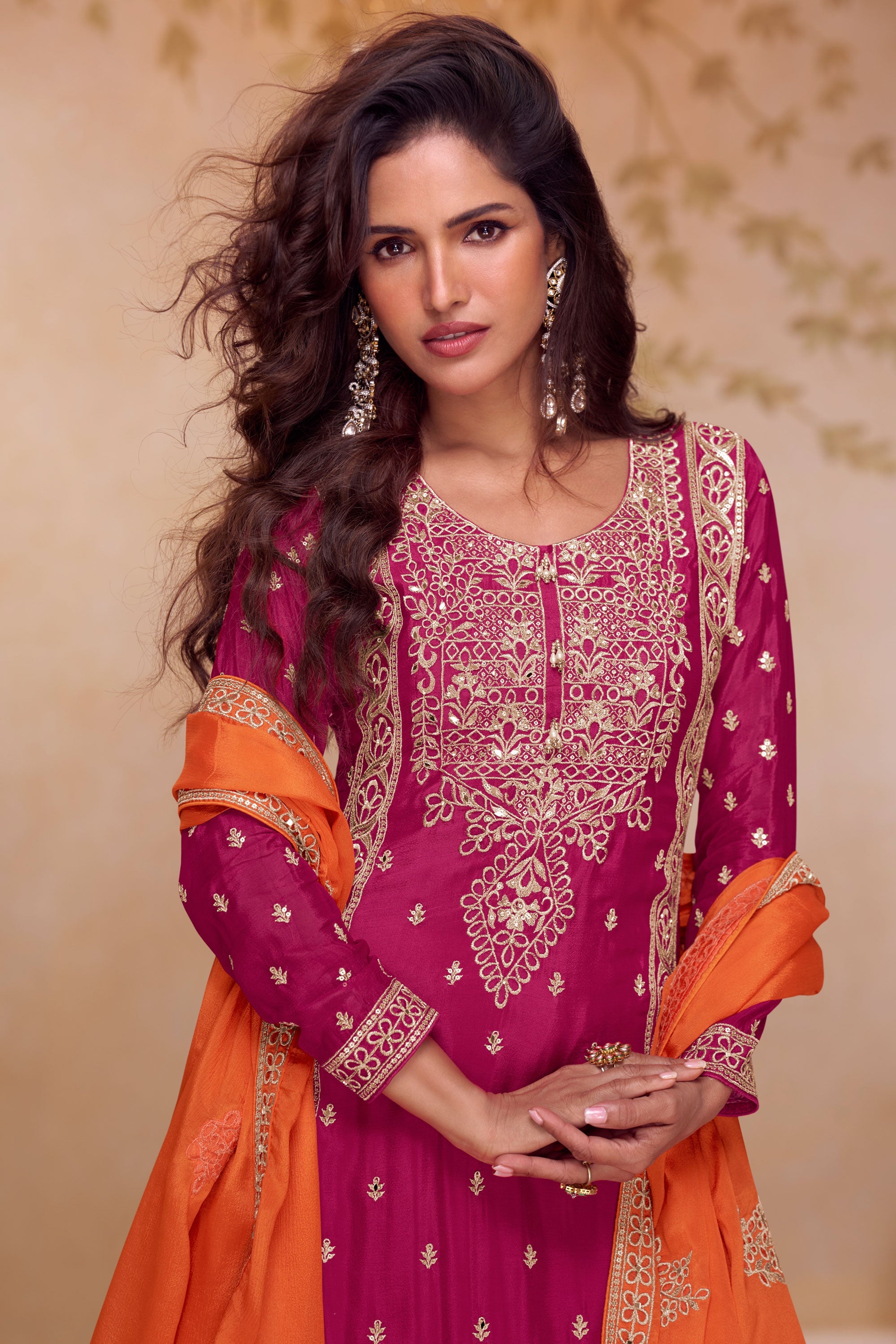 Chinon Embroidered Rani Festive Wear Readymade Palazzo Suit