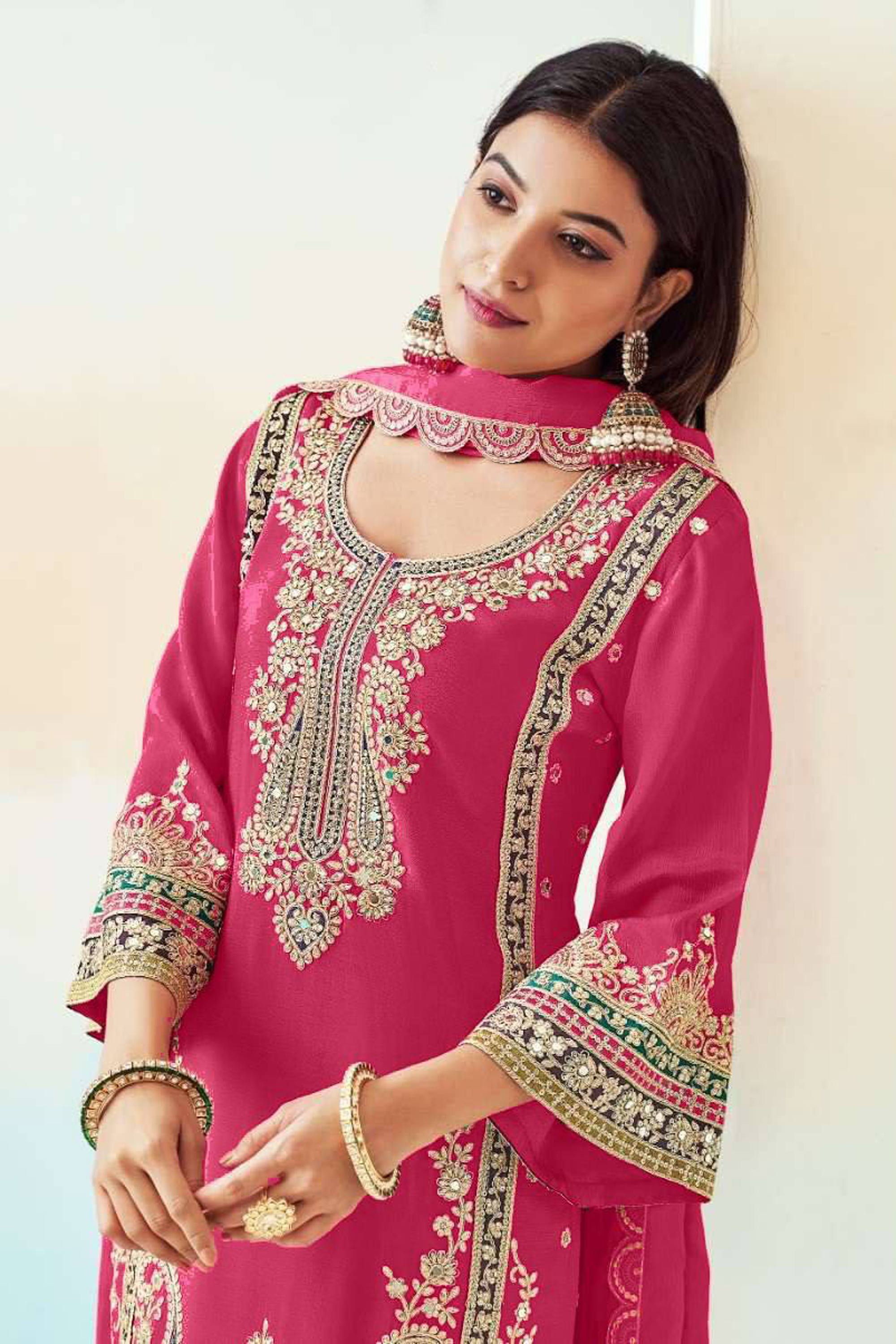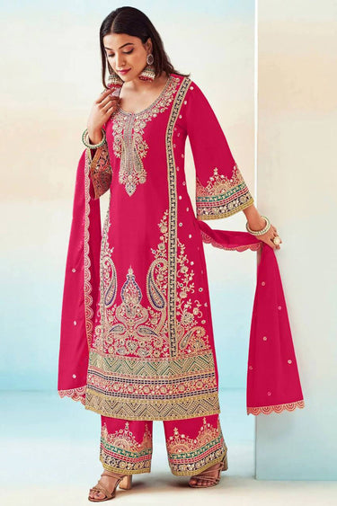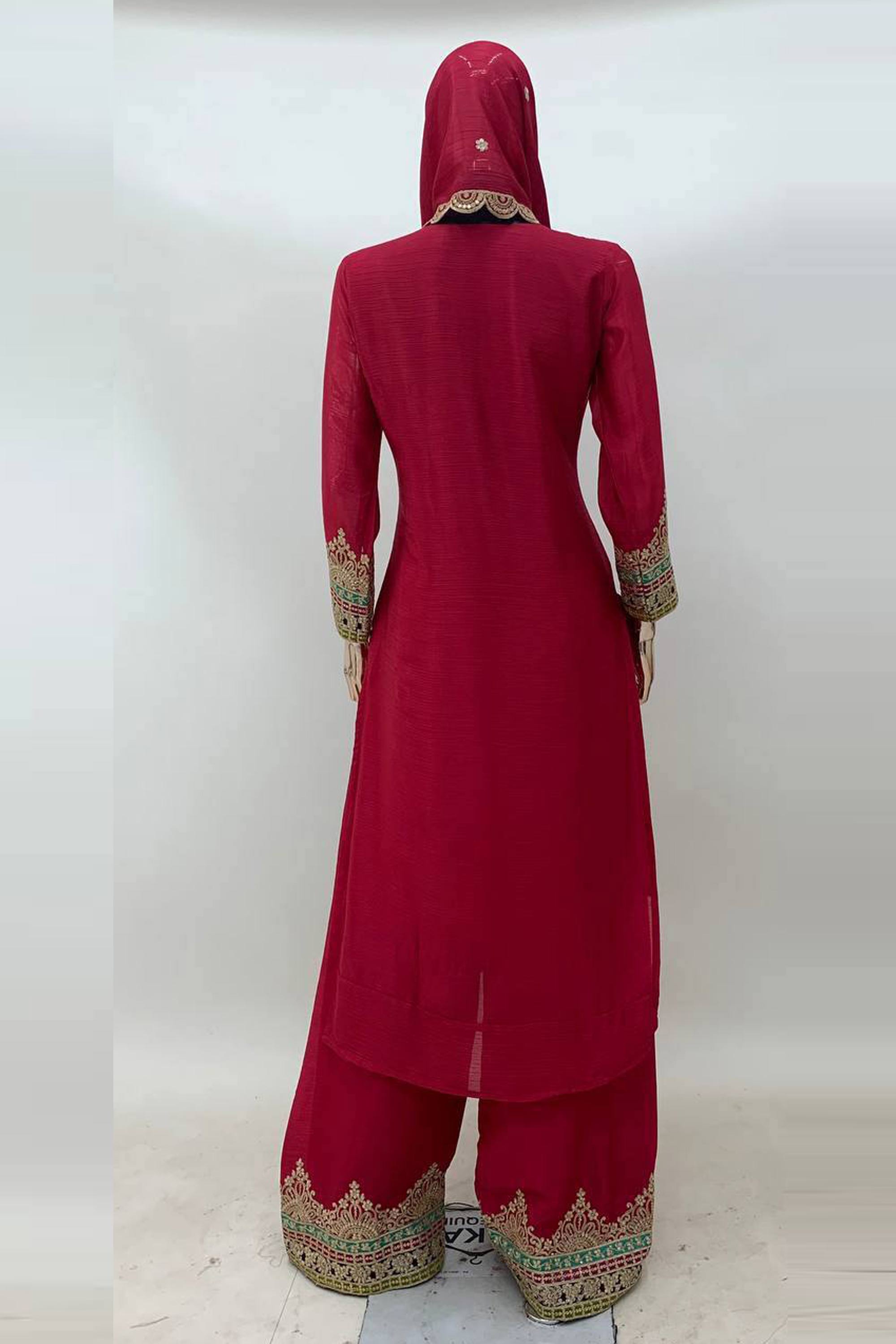 Chinon Embroidered Rani Function Wear Readymade Palazzo Suit With Dupatta