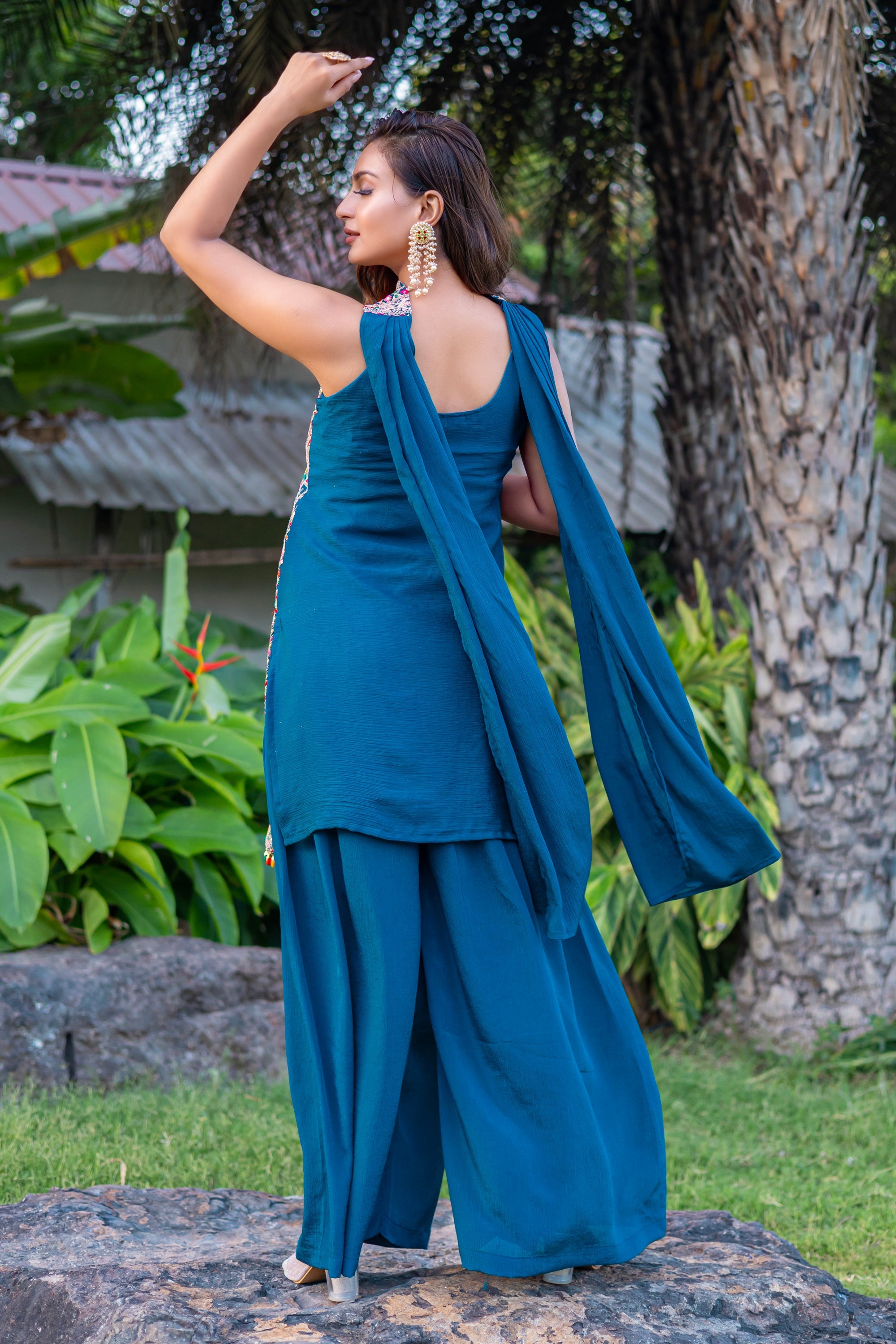 Chinon Embroidered Teal Readymade Palazzo Salwar Suit