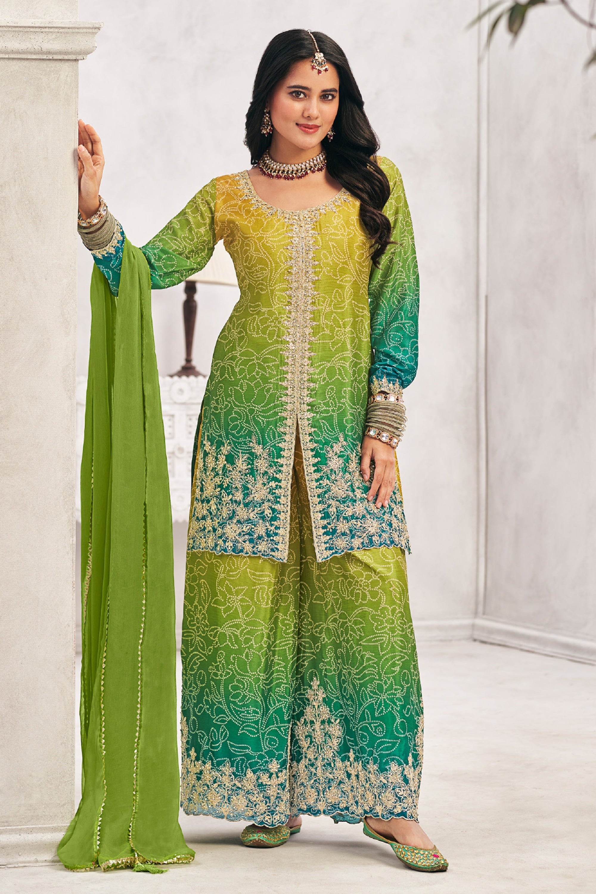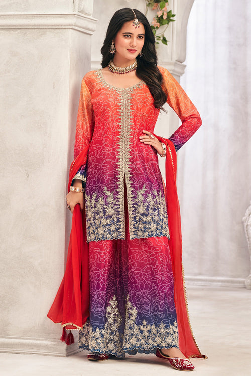 Upgrade your ethnic wardrobe with the Chinon Embroidered Reach Color Designer Readymade Palazzo Style Salwar Kameez. This beautiful set features intricate embroidery, offering a blend of tradition and modern style. The lightweight Chinon fabric ensures comfort, making it perfect for festive occasions or family gatherings. The designer touch to the palazzo pants adds a contemporary twist to a classic outfit, allowing you to make a stylish statement effortlessly.