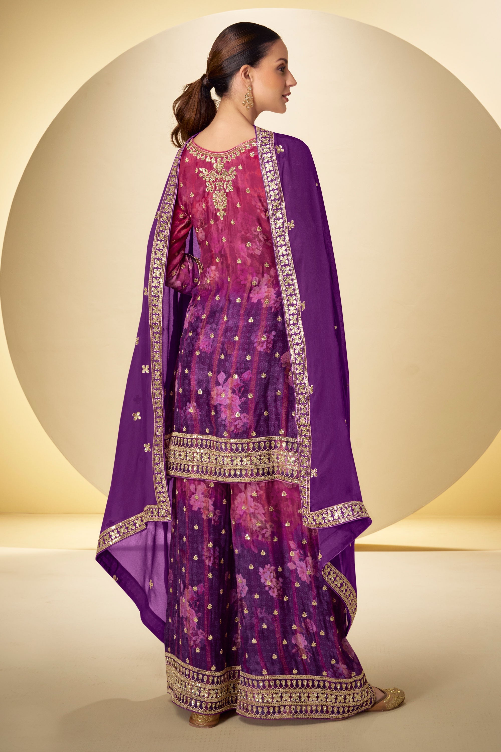Chinon Purple Embroidered Designer Readymade Palazzo Dress