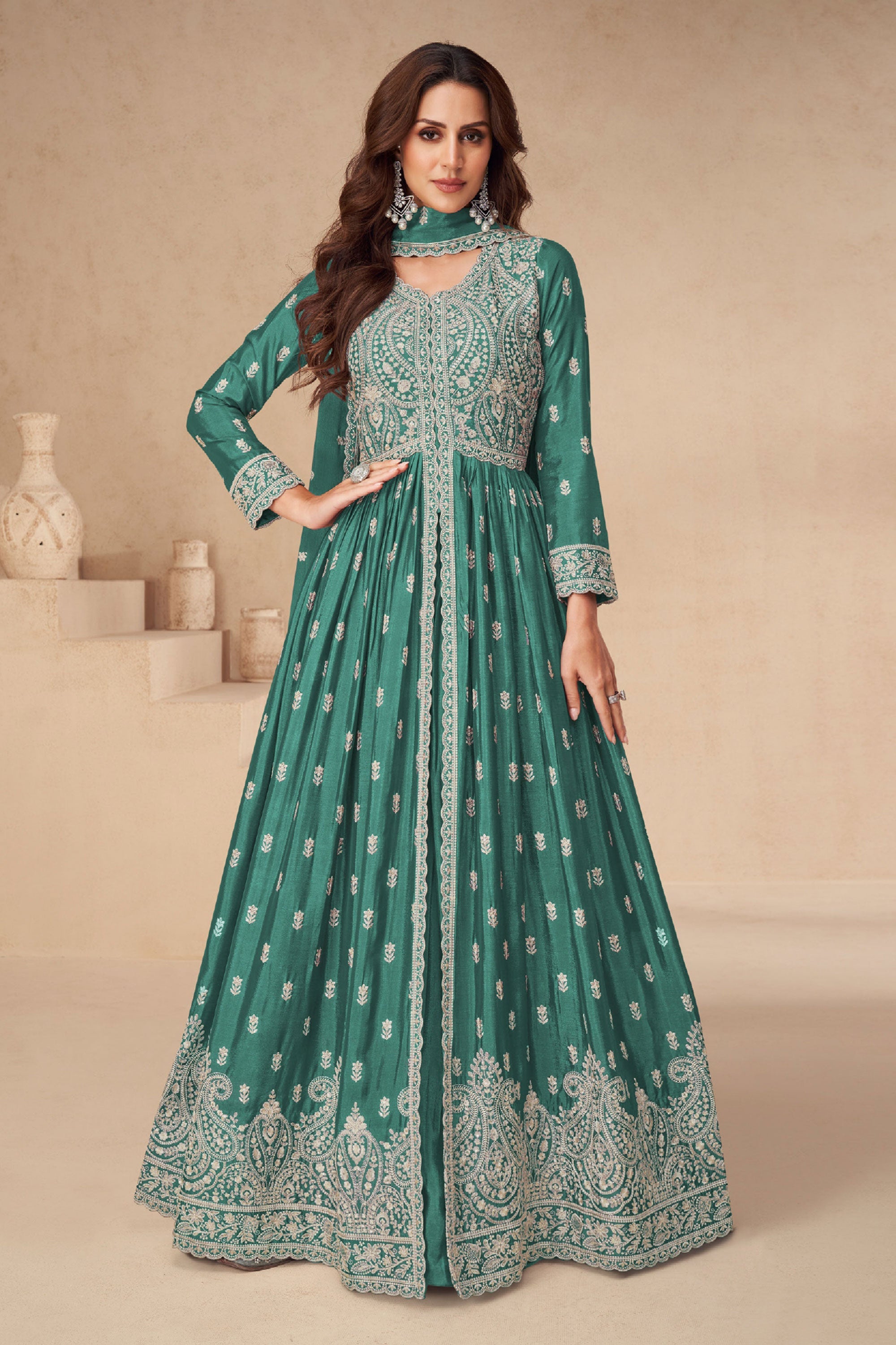 Chinon Silk Festive Wear Designer Readymade Anarkali Dress