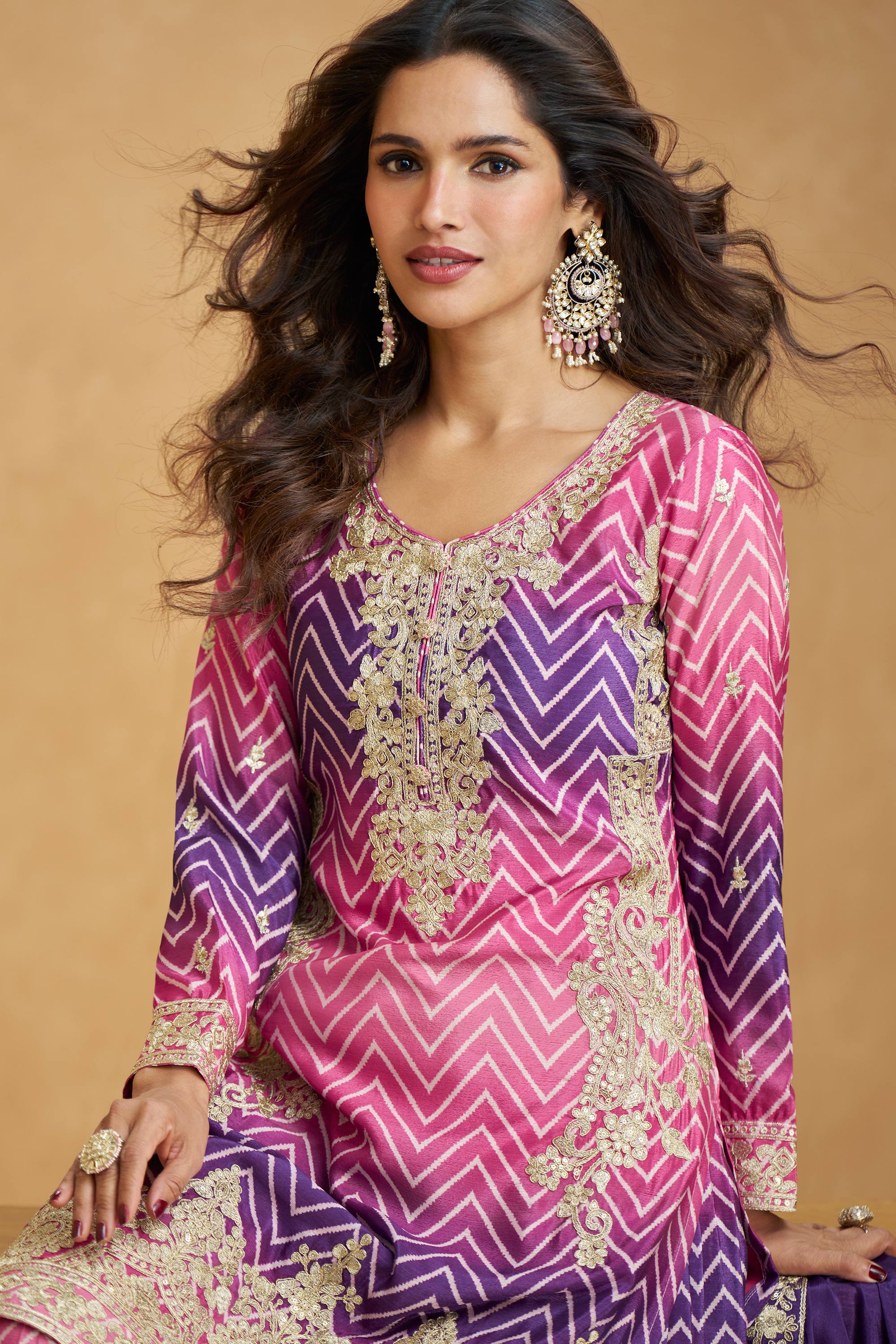 Celebrate special moments in style with this luxurious Salwar Kameez Palazzo Suit. Made from premium Chinnon silk, the beautifully crafted top, palazzo, and dupatt? showcase fine embroidery work for a festive finish. The rich color adds depth and elegance, making it an excellent choice for festivals and special occasions. Comfortable and stylish, this readymade outfit is perfect for every celebration. Note: Due to digital photography, slight color variations may occur.