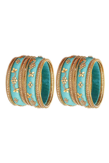 Classy Customized Designer Silk Thread Bangles Set In Cyan