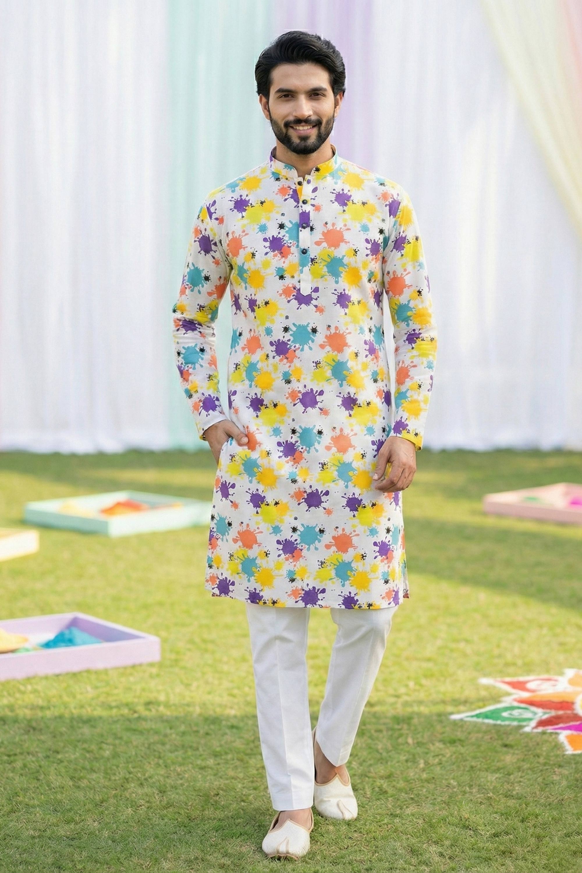 Cotton Fabric Multi Color Readymade Kurta Pyjama For Men