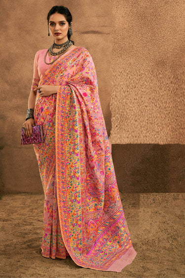 Cotton Fabric Printed Pink Saree For Festive Wear