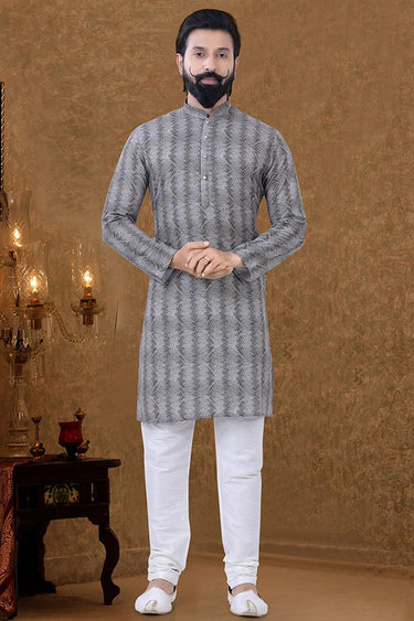Cotton Fabric Sangeet Wear Vivacious Kurta Pyjama In Grey Color