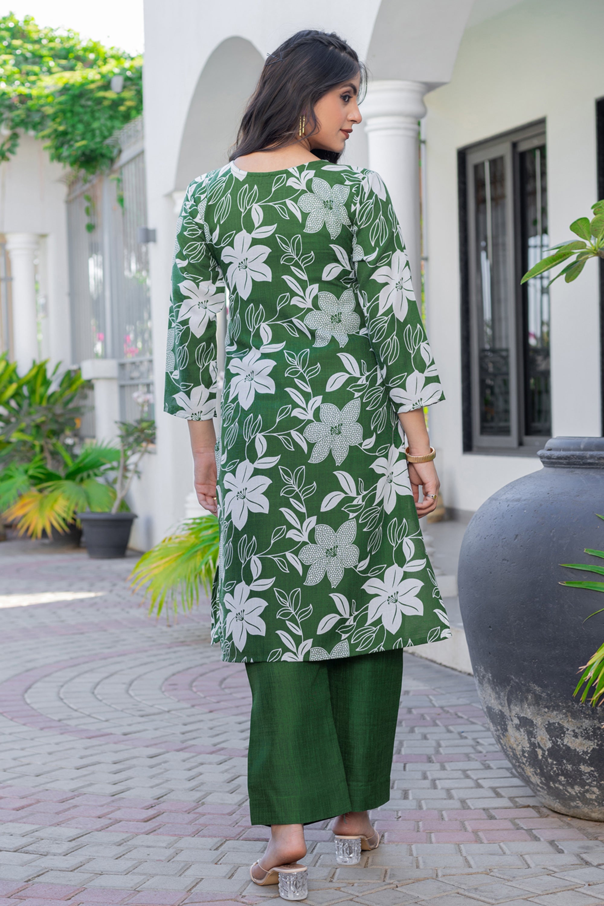 Cotton Green Daily Wear Readymade Kurti With Pant