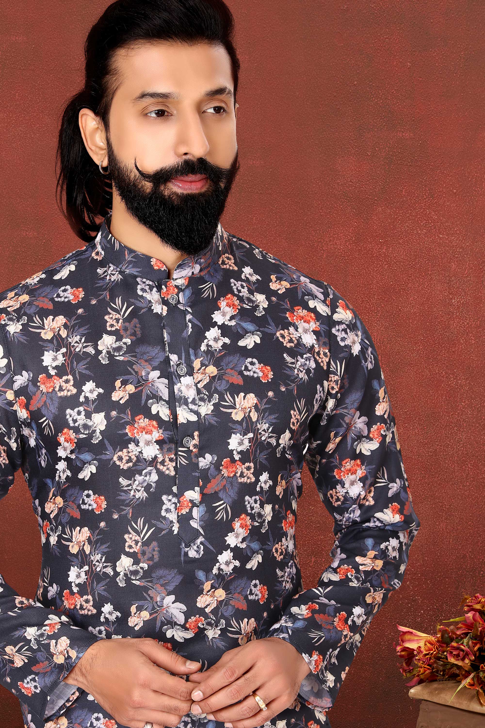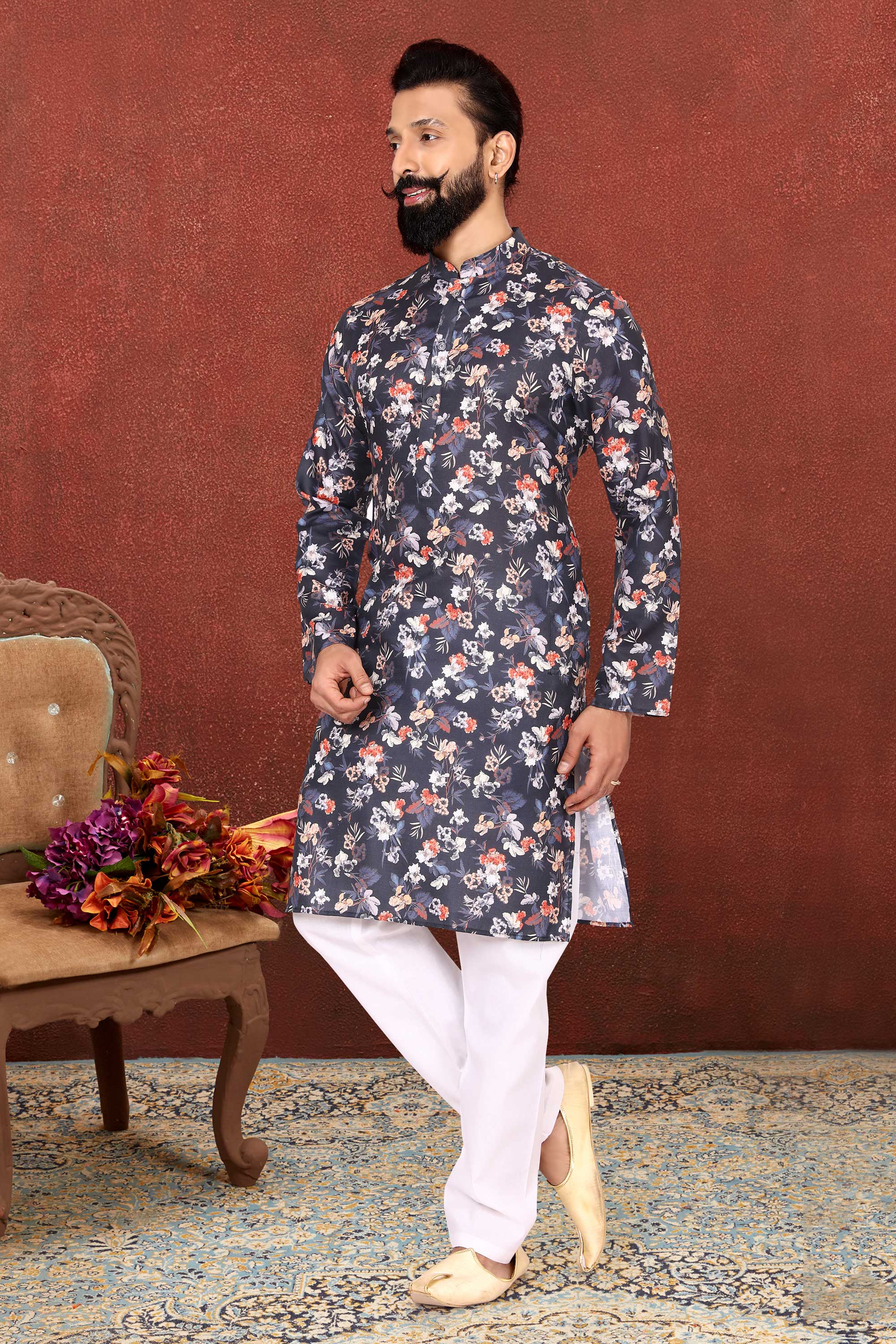 Cotton Navy Blue Magnificent Readymade Men Kurta Pyjama For Sangeet Wear