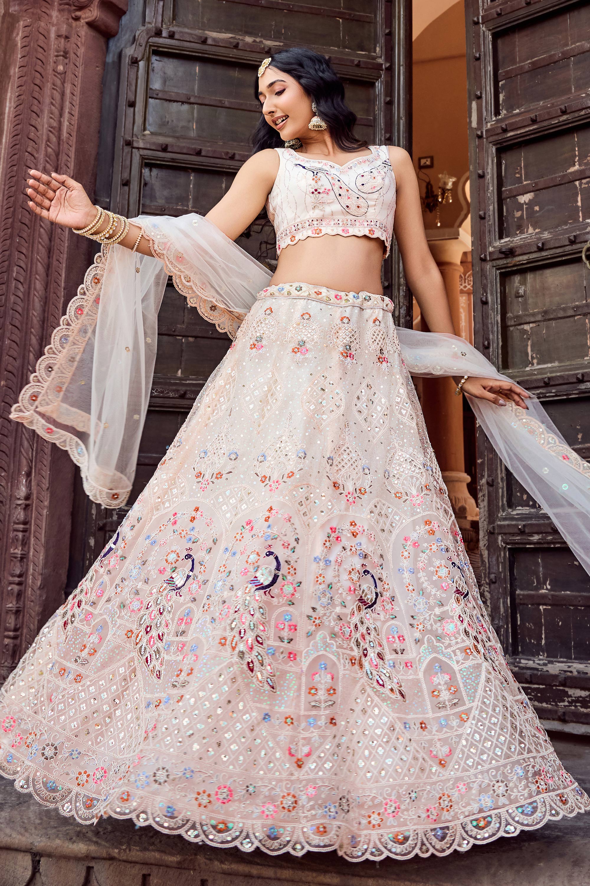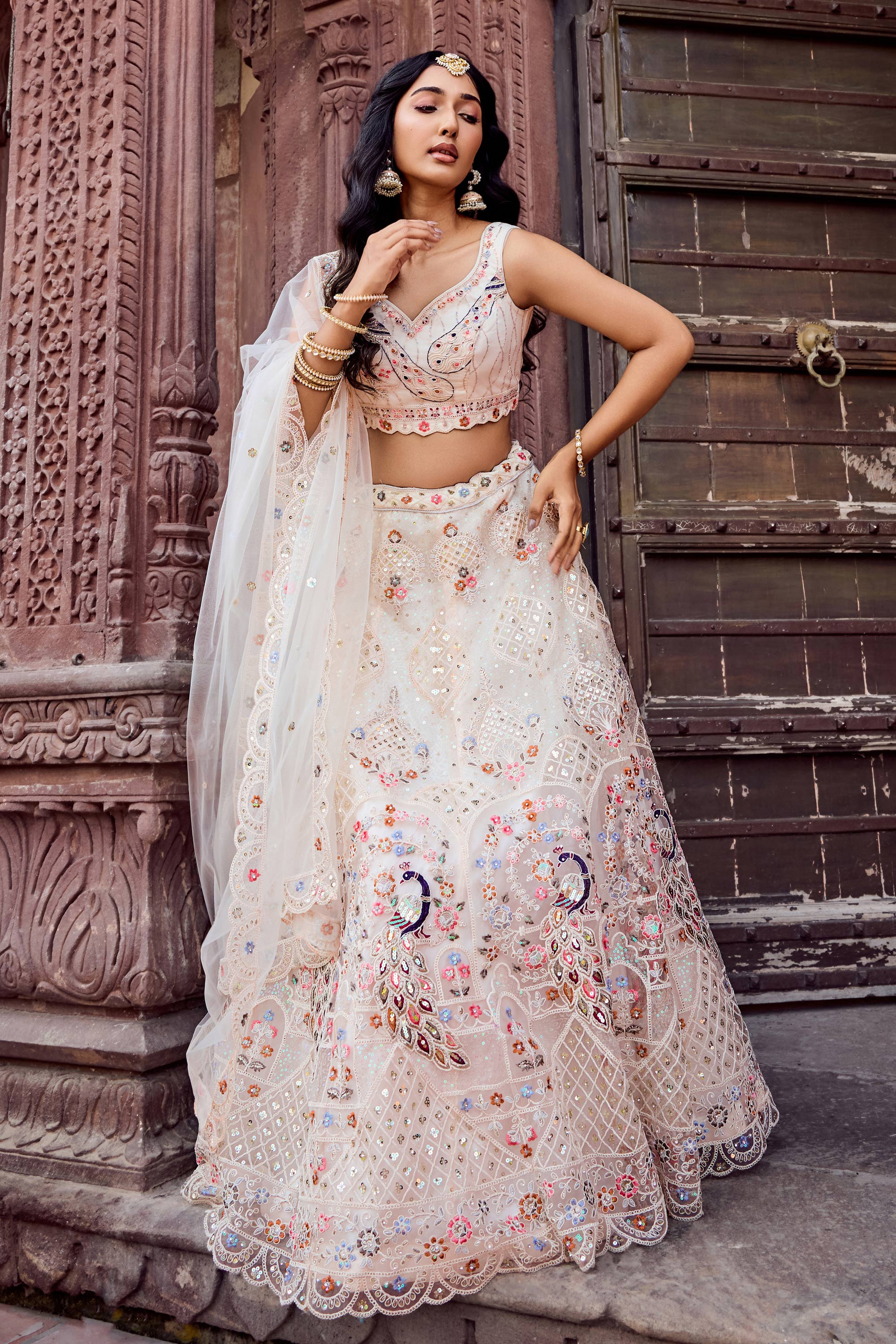 Cream Wedding Wear Embroidered Lehenga Choli With Dupatta