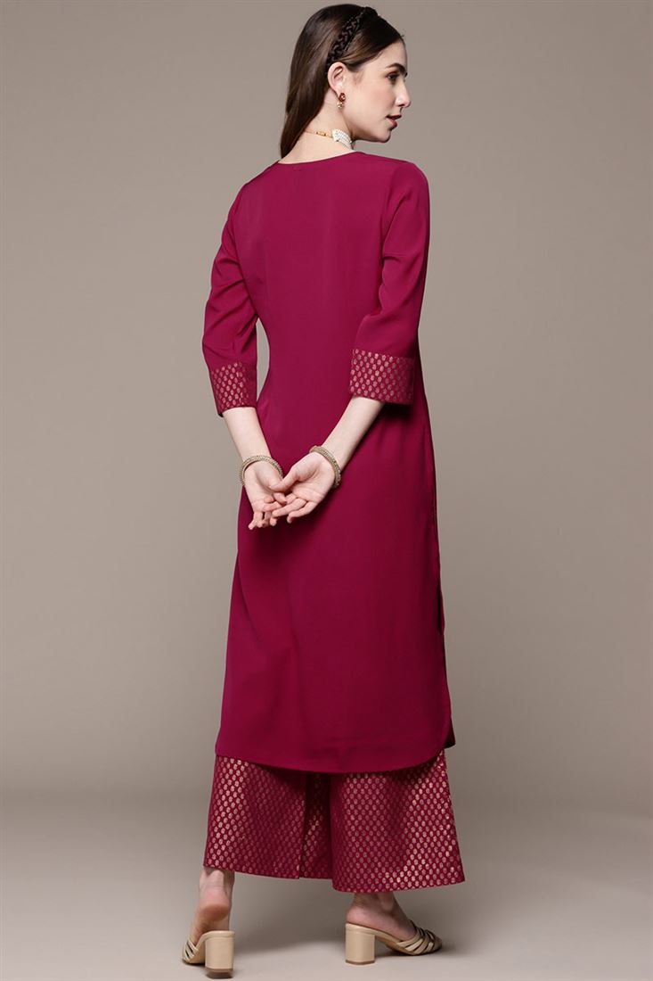 Crepe Fabric Magenta Color Casual Wear Posh Kurti With Palazzo Set