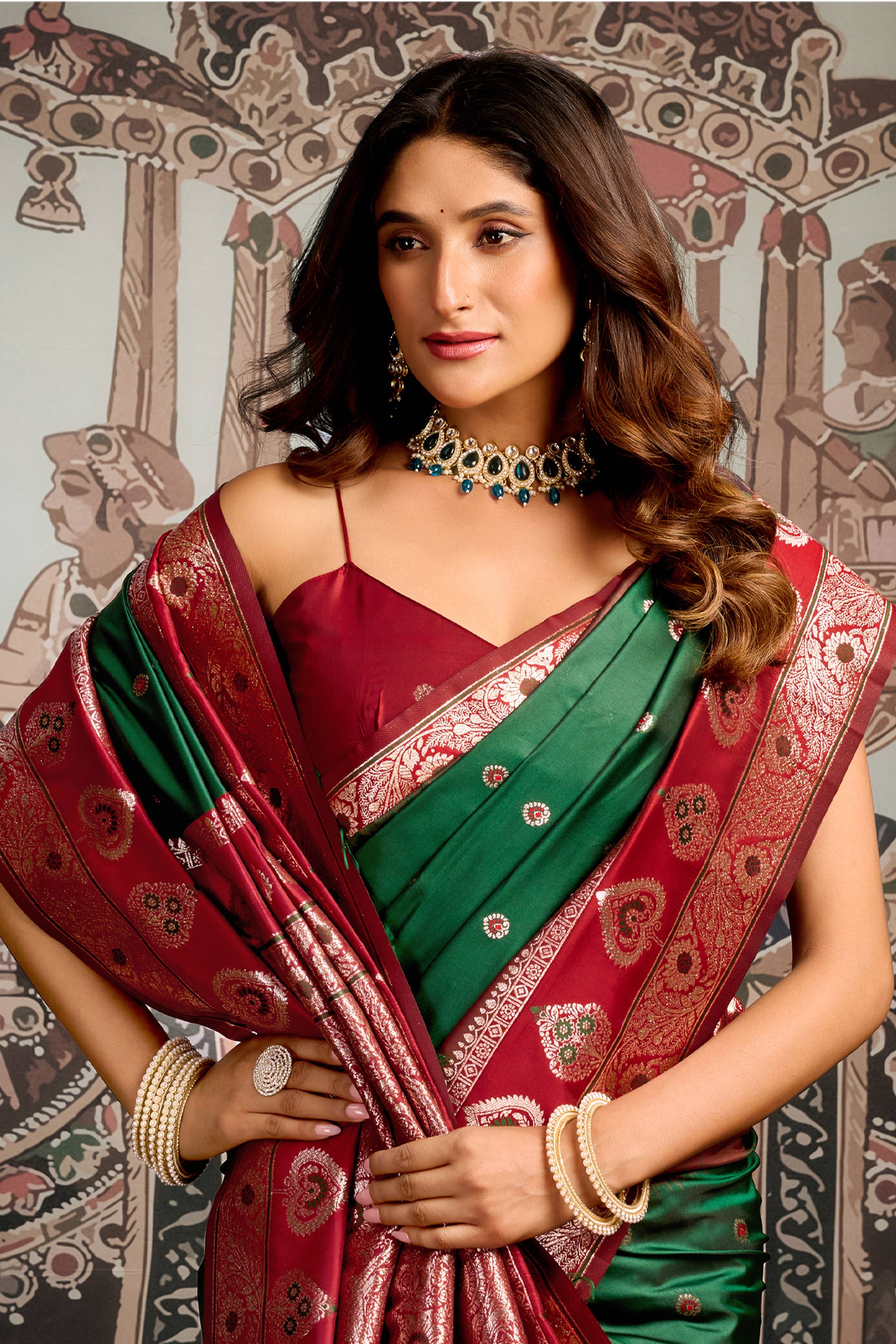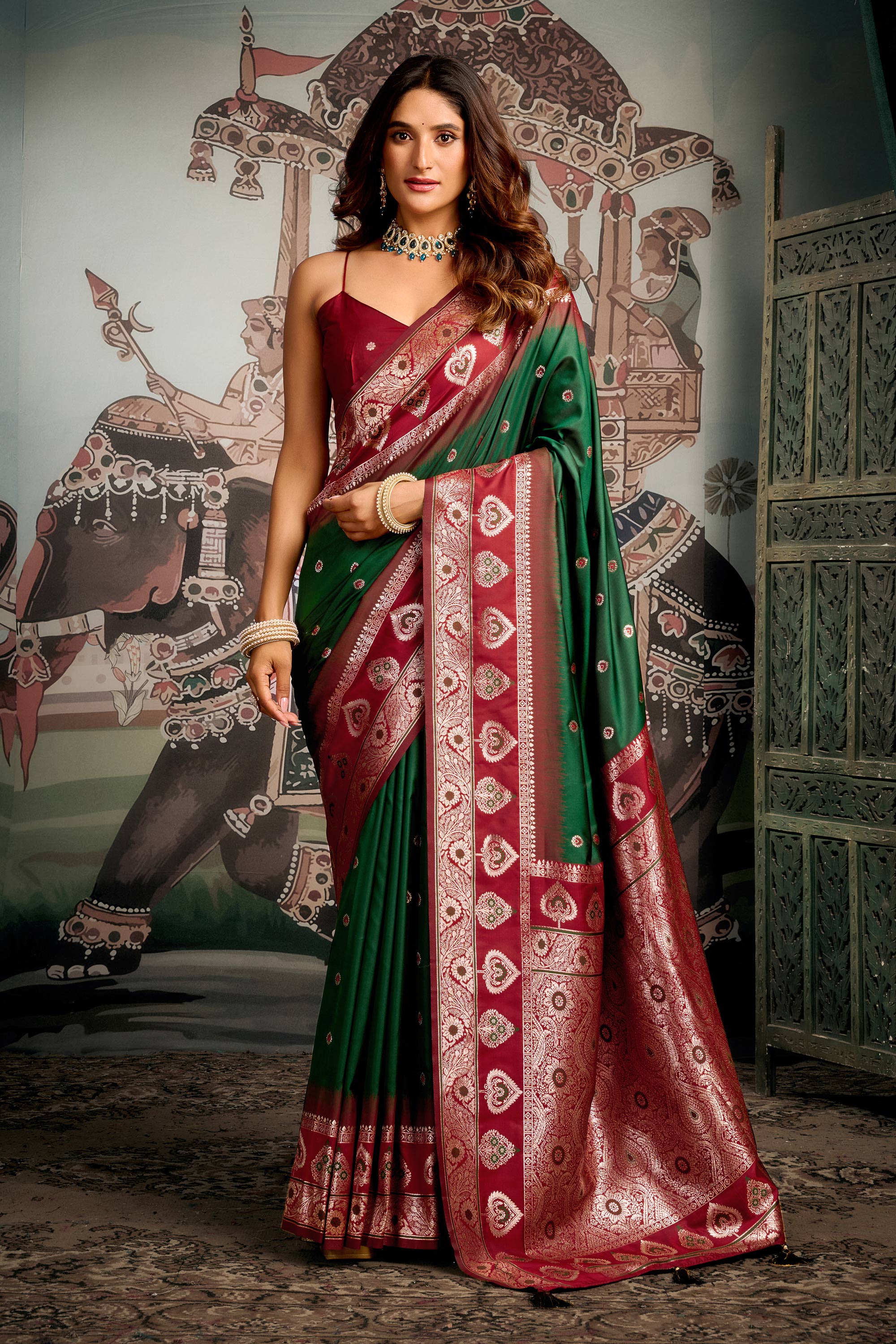 Dark Green Art Silk Weaving Work Festive Wear Saree