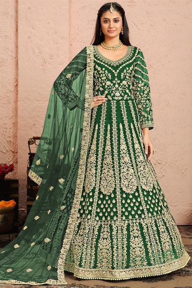 Dark Green Color Function Wear Embroidered Net Fabric Designer Anarkali Suit
