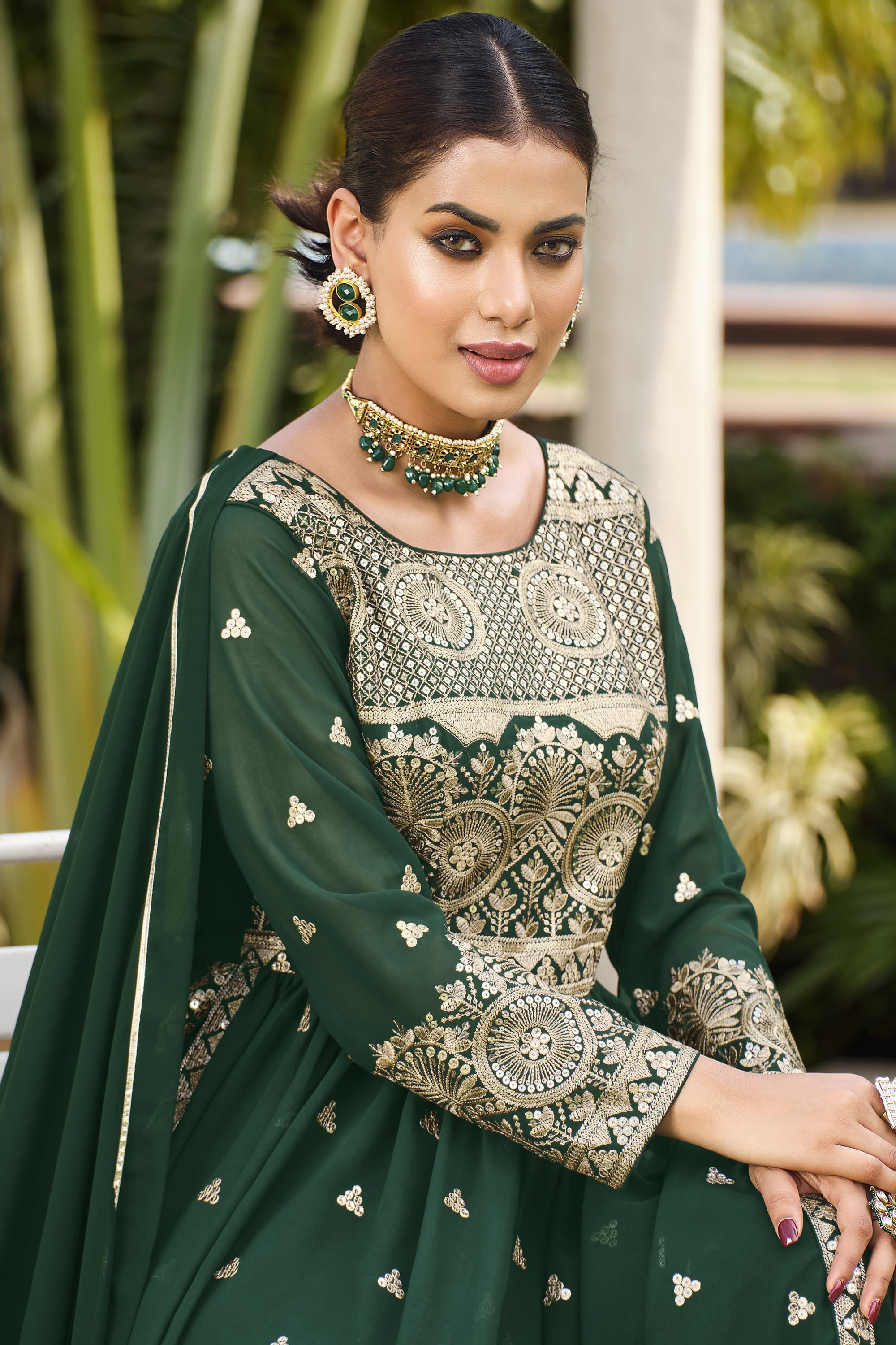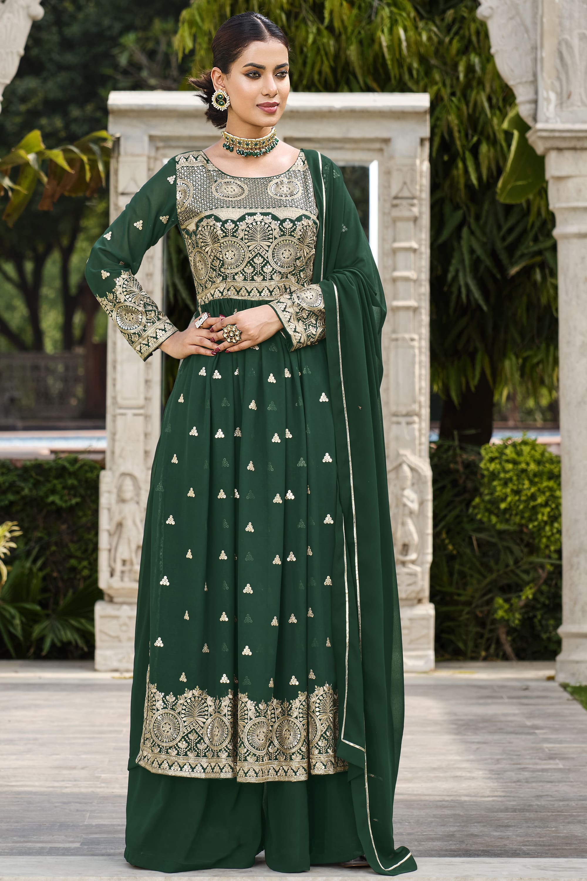 Dark Green Color Georgette Fabric Fancy Sequence Work Function Wear Readymade Palazzo Salwar Suit