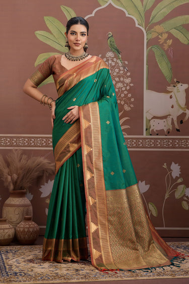 Dark Green Zari Weaving Tussar Silk Handloom Saree
