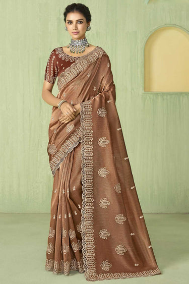 Dazzling Brown Color Silk Fabric Saree