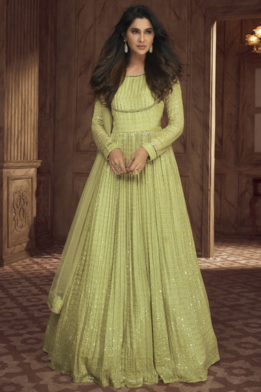 Dimple Sharma Traditional Readymade Sea Green Color Georgette Gown With Dupatta