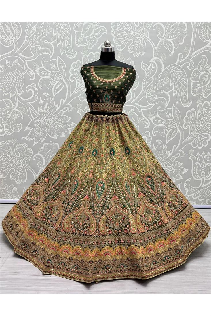 Crafted with meticulous attention to detail, this Green bridal lehenga features intricate embroidery that adds a touch of opulence to your special day. Made from high-quality Net fabric, it drapes beautifully and offers a comfortable fit. Whether you're the bride or attending a wedding, this lehenga will make you feel like royalty.