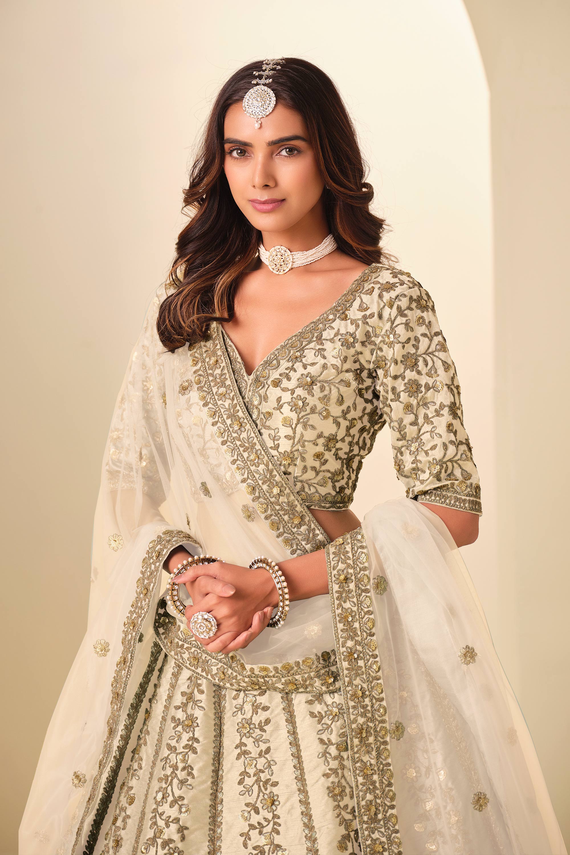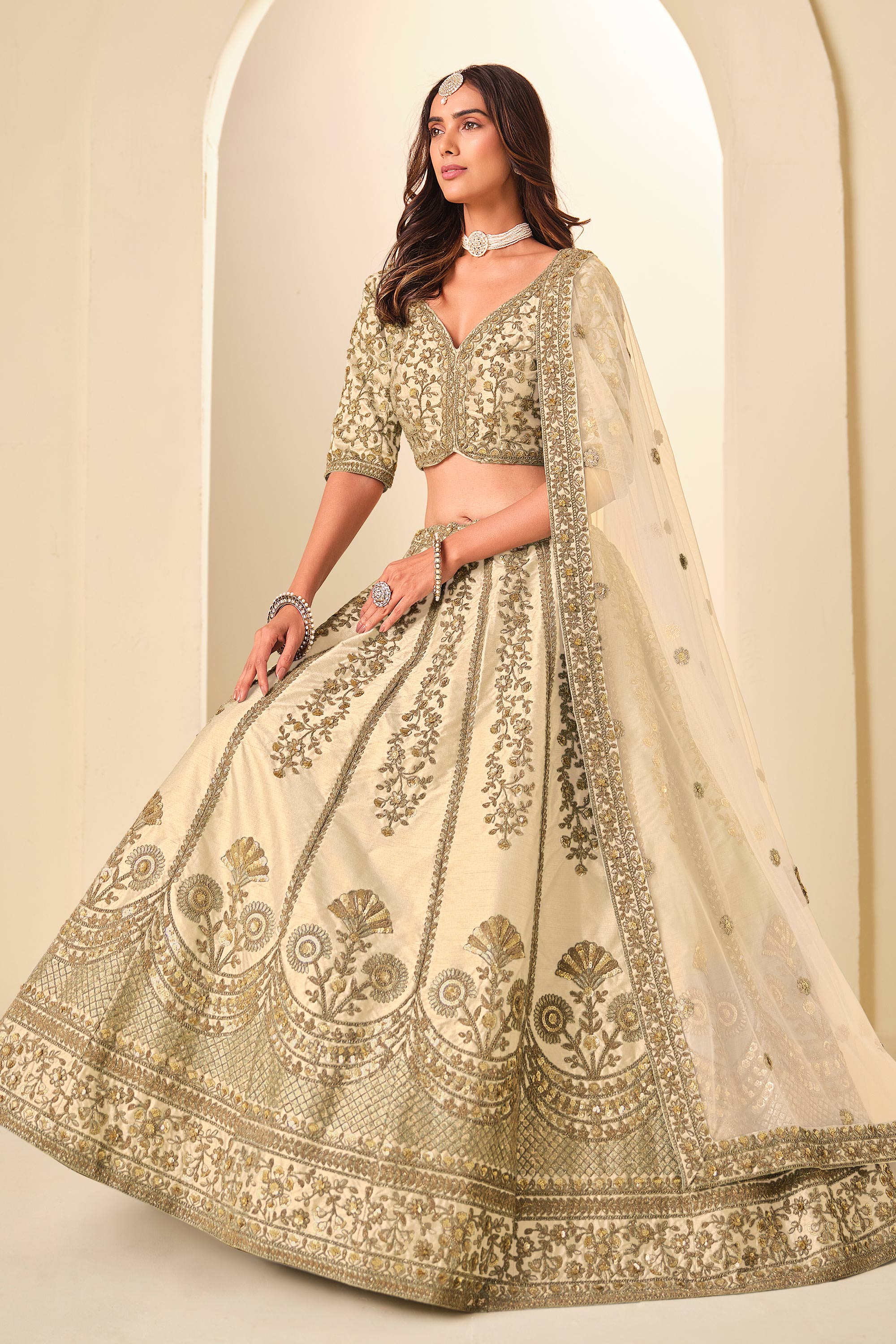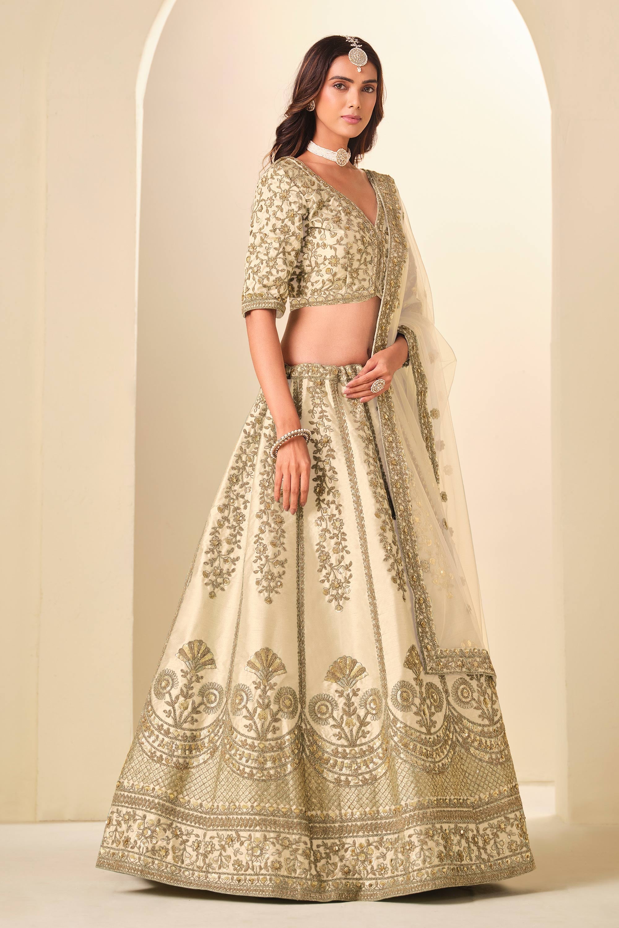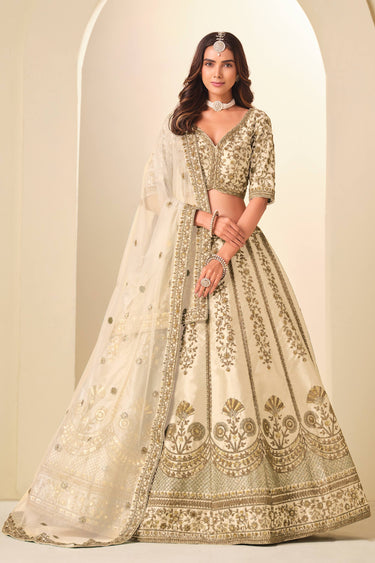 Embroidered Art Silk Fabric Beige Lehenga Choli For Function Wear