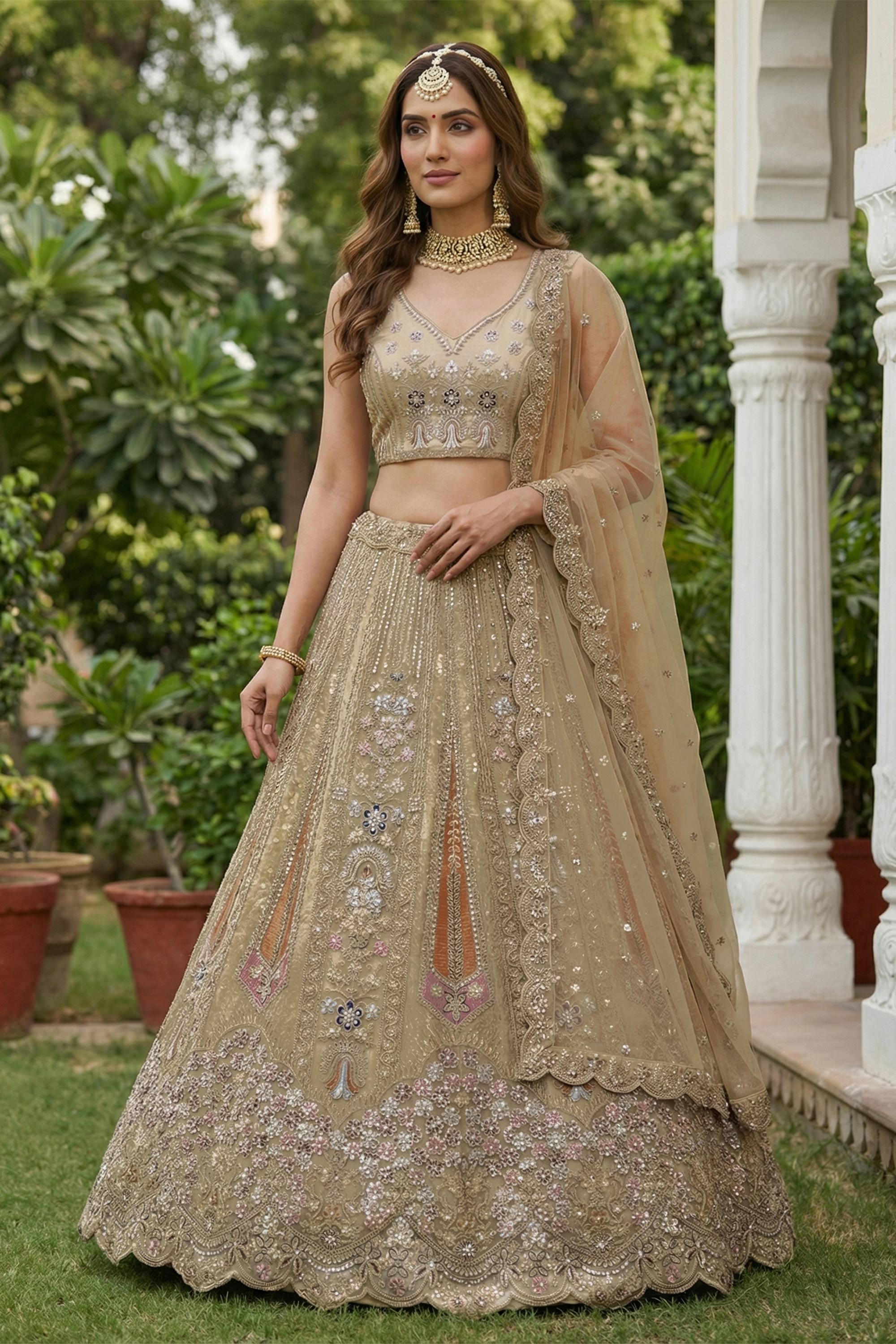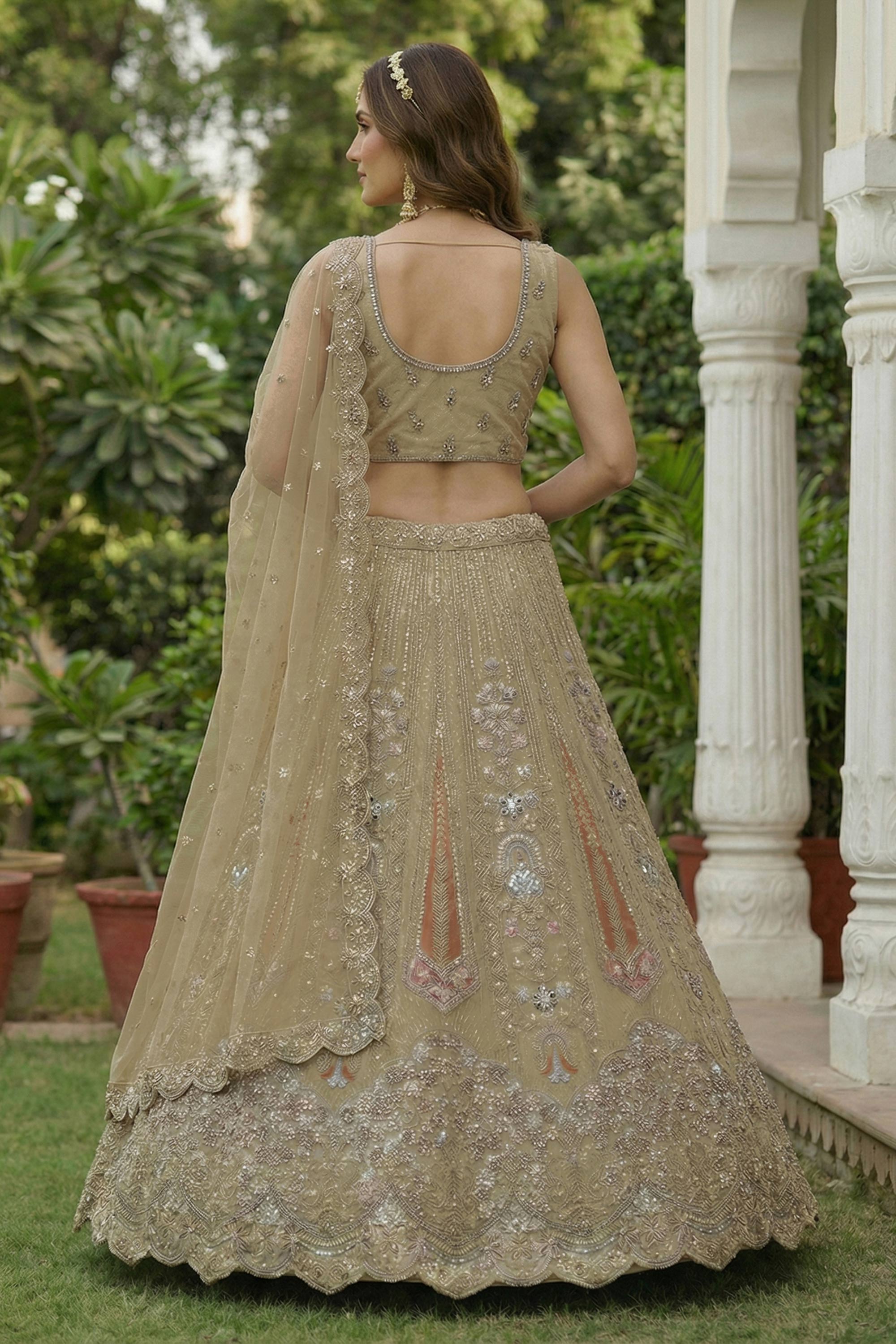 Embroidered Cream Net Wedding Wear Lehenga Choli