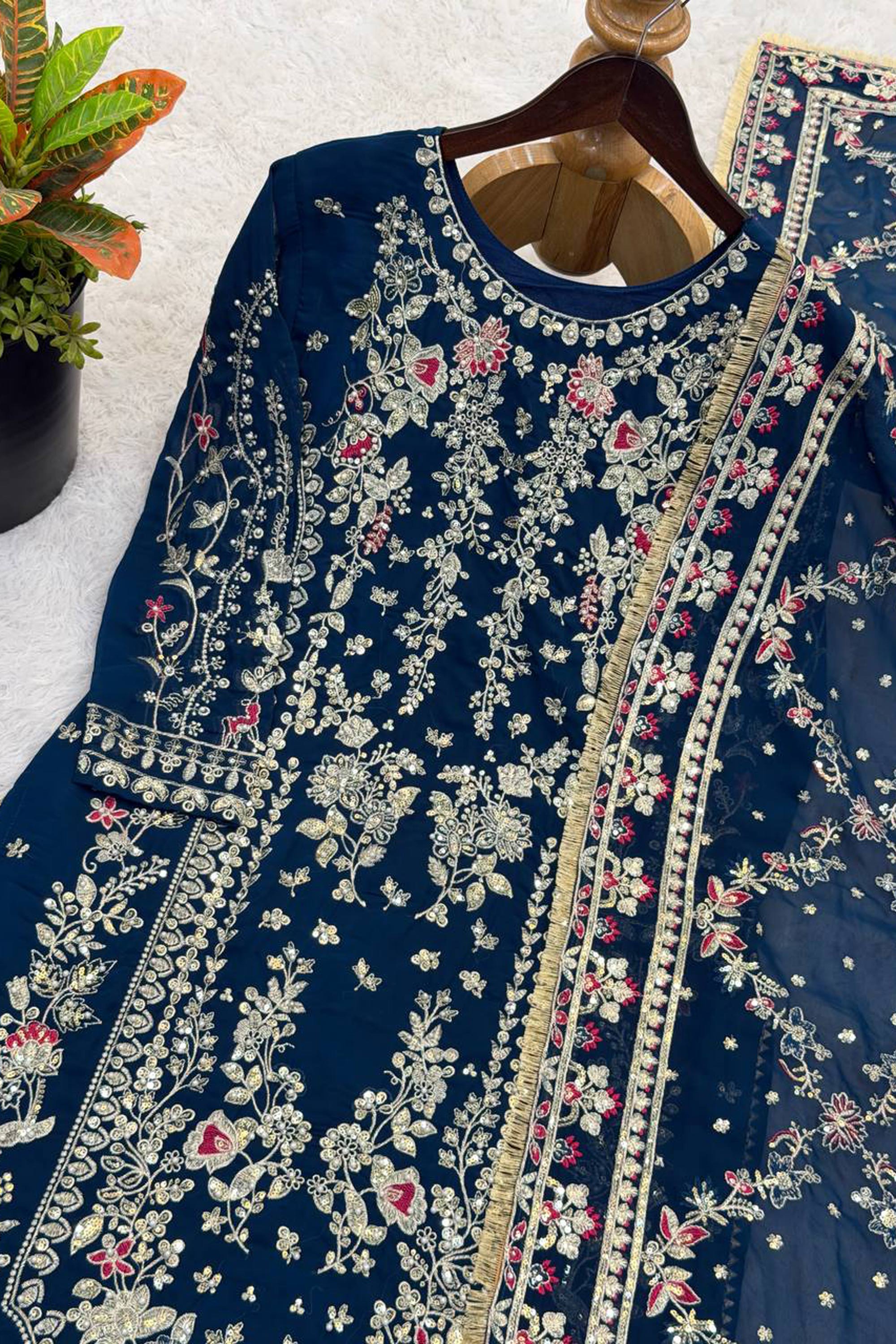 Embroidered Georgette Blue Readymade Palazzo Suit For Sangeet Wear