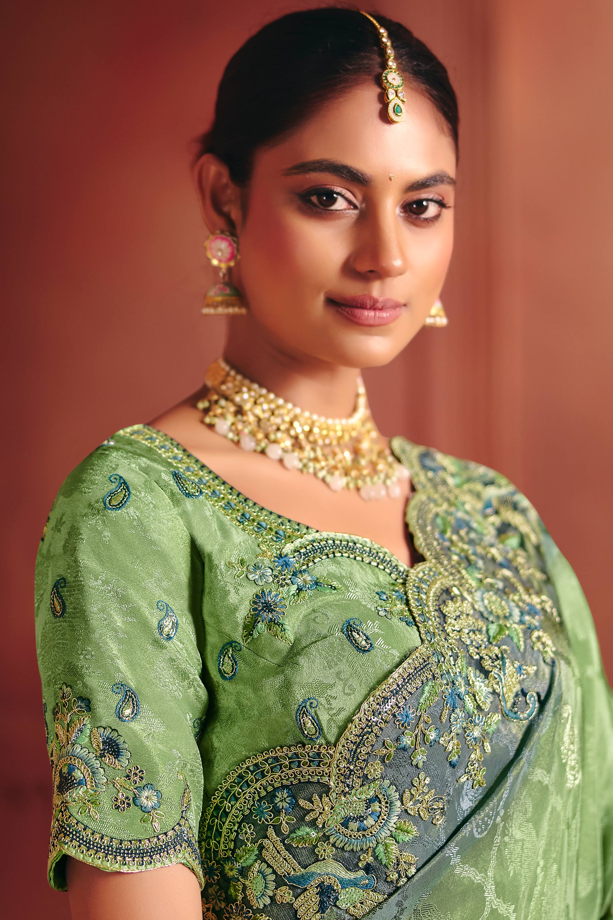 Elevate your ethnic style with this beautifully embroidered Jacquard Saree. Paired with a silk blouse, it offers a luxurious feel and graceful drape. The rich color makes it perfect for weddings and festive events. Slight color variation may occur due to digital photography.