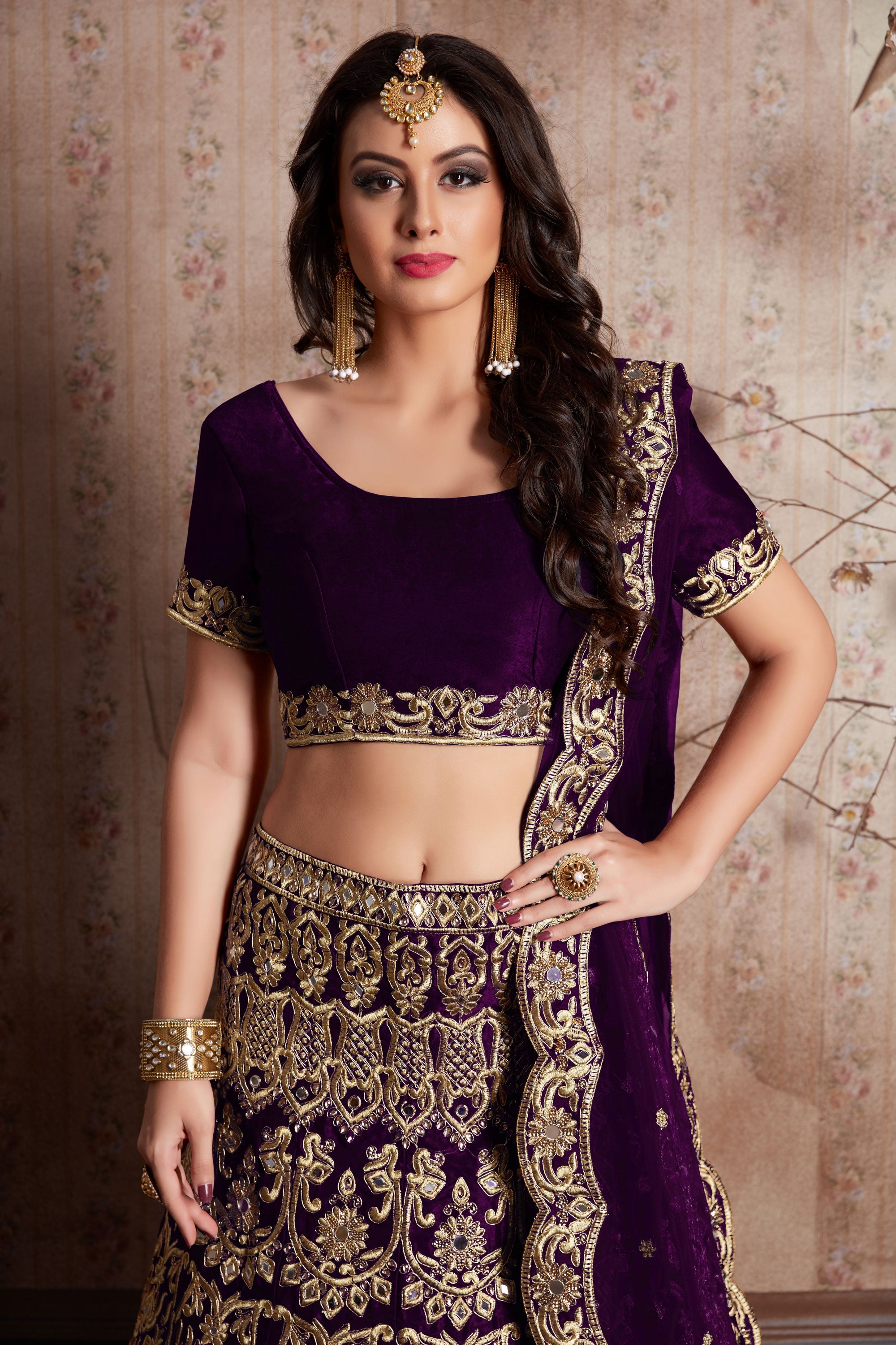 Embroidered Purple Velvet Sangeet Wear Lehenga Choli
