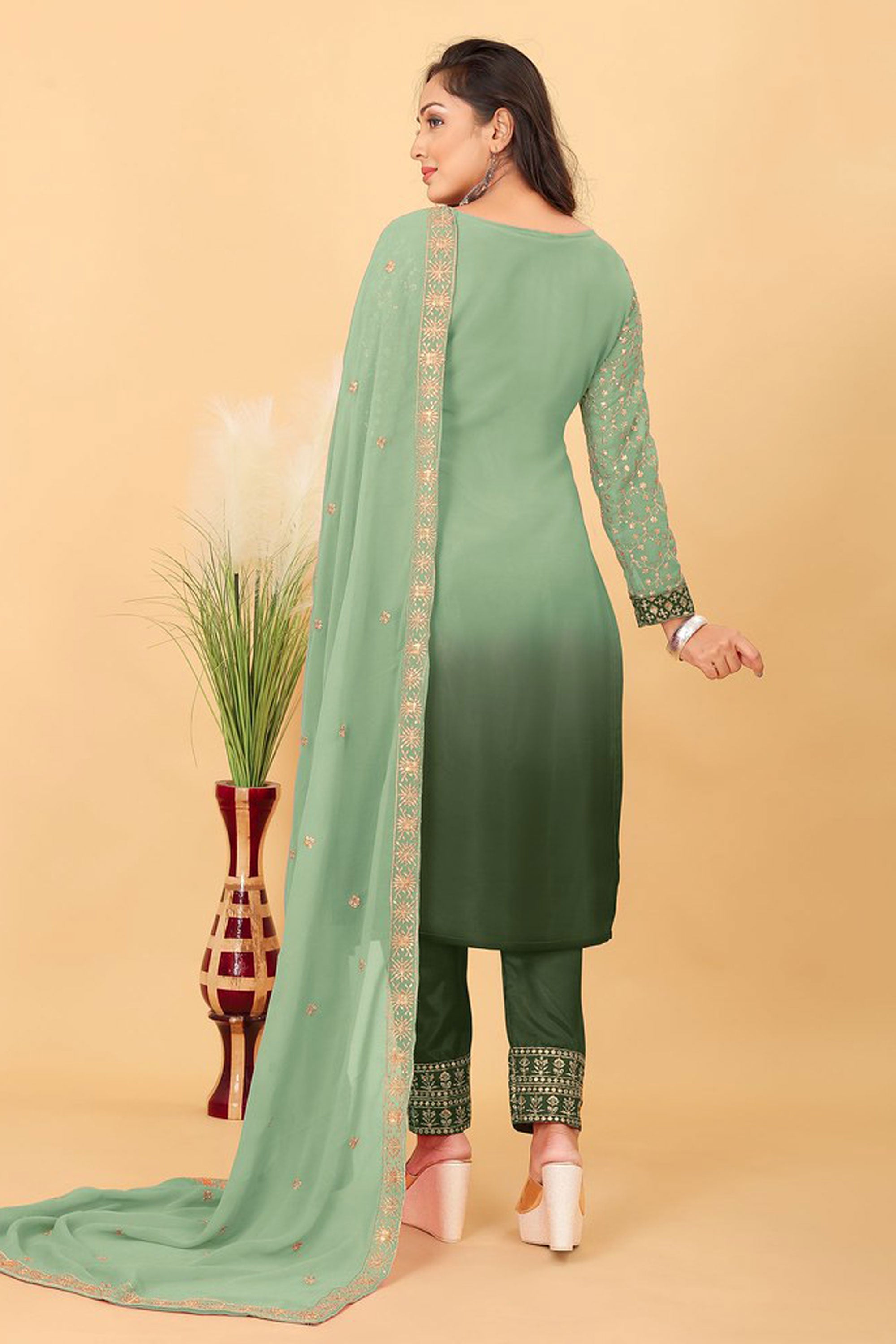 Embroidered Sea Green Georgette Readymade Straight Cut Salwar Suit