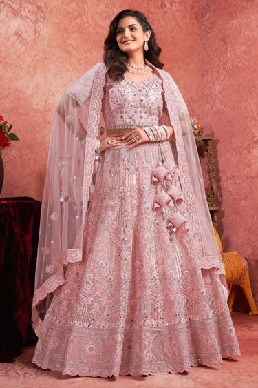 Embroidered Wedding Wear Lehenga Choli In Pink Color Net Fabric