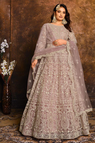 Embroidery Work Lavender Color Net Fabric Anarkali Salwar Suit