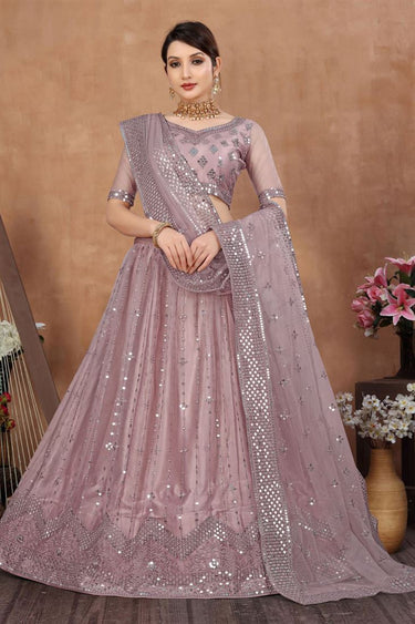 Embroidery Work Pink Color Net Fabric Fascinating Lehenga Choli