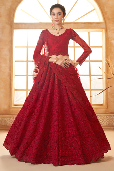 Emerald Net Red Thread Lehenga Choli
