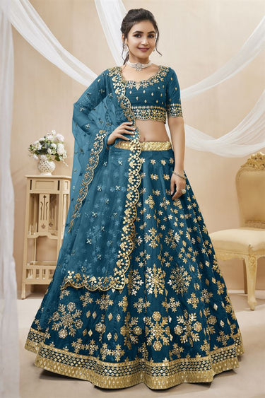 Engaging Blue Color Art Silk Fabric Embroidered Work Lehenga Choli