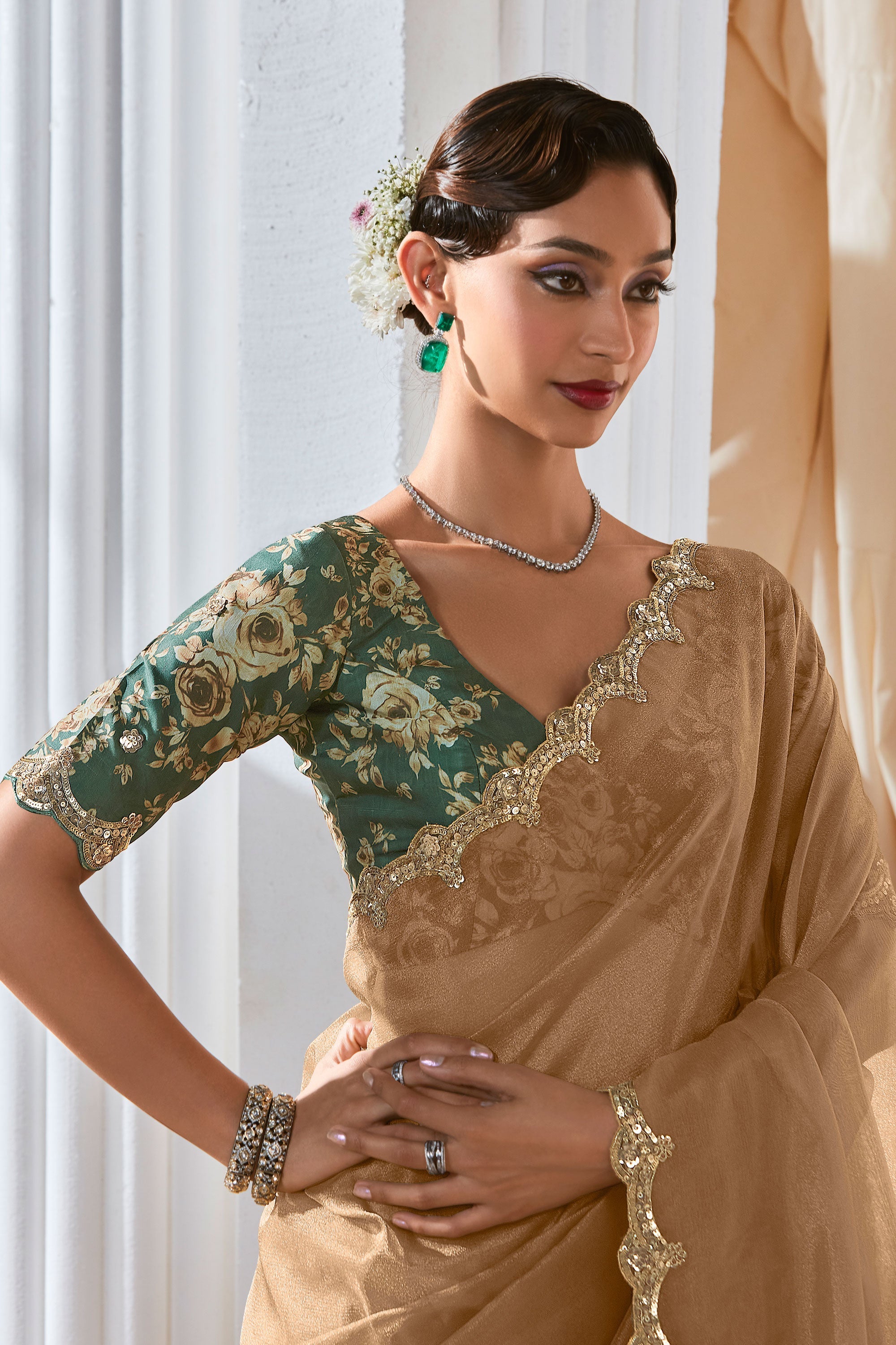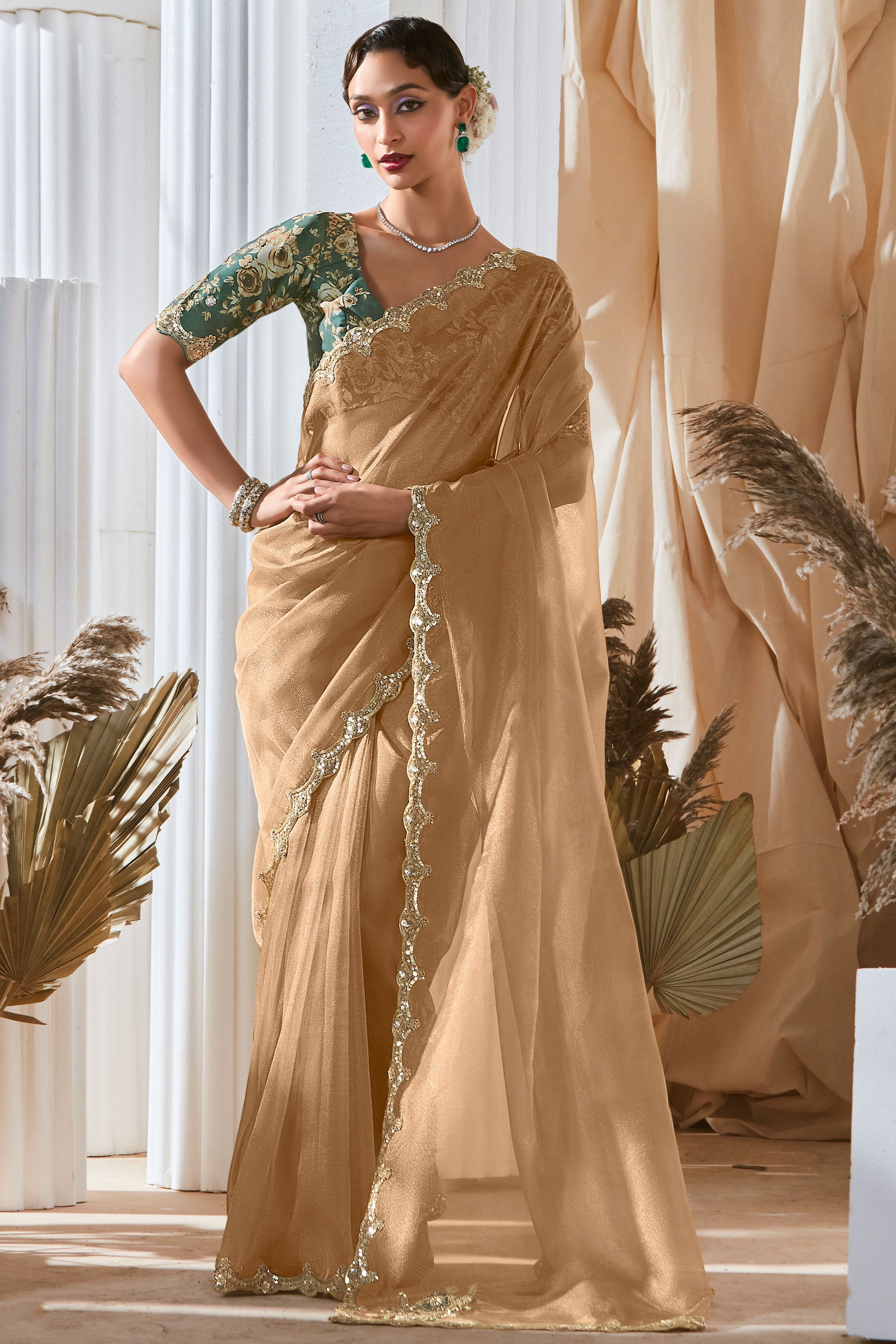 Elevate your festive wardrobe with this exquisite Designer Saree, crafted to make every celebration memorable. The saree features a luxurious fancy fabric that drapes gracefully, paired with a digital printed blouse for a modern, stylish touch. Adorned with delicate sequins work, it adds just the right sparkle to capture every eye at festivals, weddings, and special functions. Lightweight yet striking, this saree effortlessly blends tradition with contemporary charm. Note: Due to digital photography, slight color variations may occur.