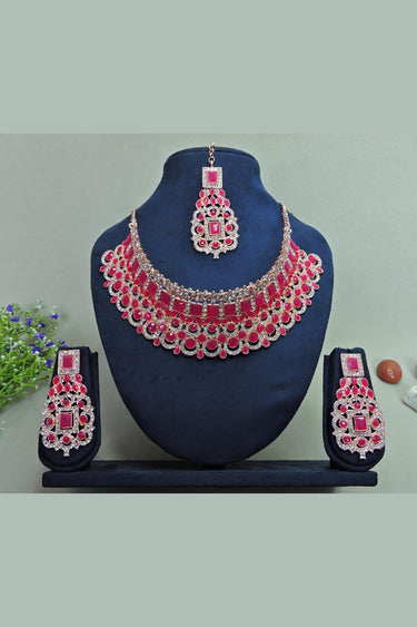 Engaging Rani Color Alloy Necklace With Earrings and Mang Tikka