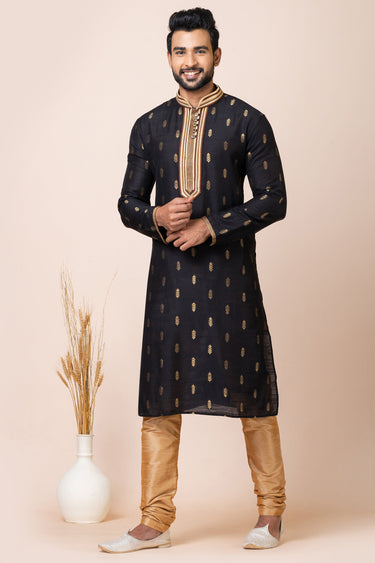 Entrancing Jacquard Fabric Readymade Kurta Pyjama In Black Color