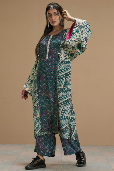 Exclusive Green Color Viscose Crepe Fabric Hand Embroidered Fetching Readymade Kurti With Palazzo