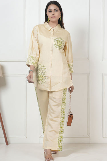 Exclusive Yellow Creme Embroidered Viscose Shirt With Pant
