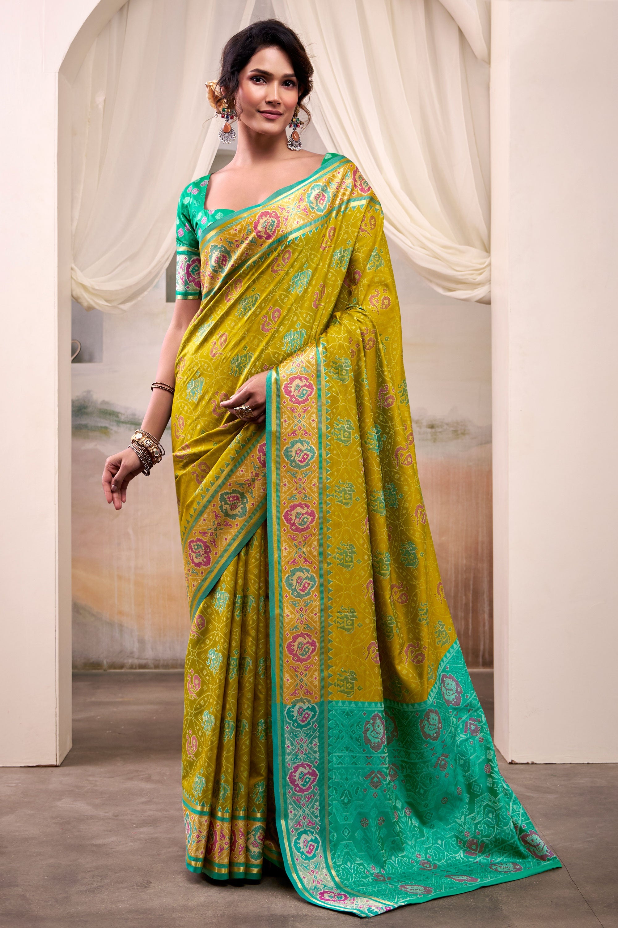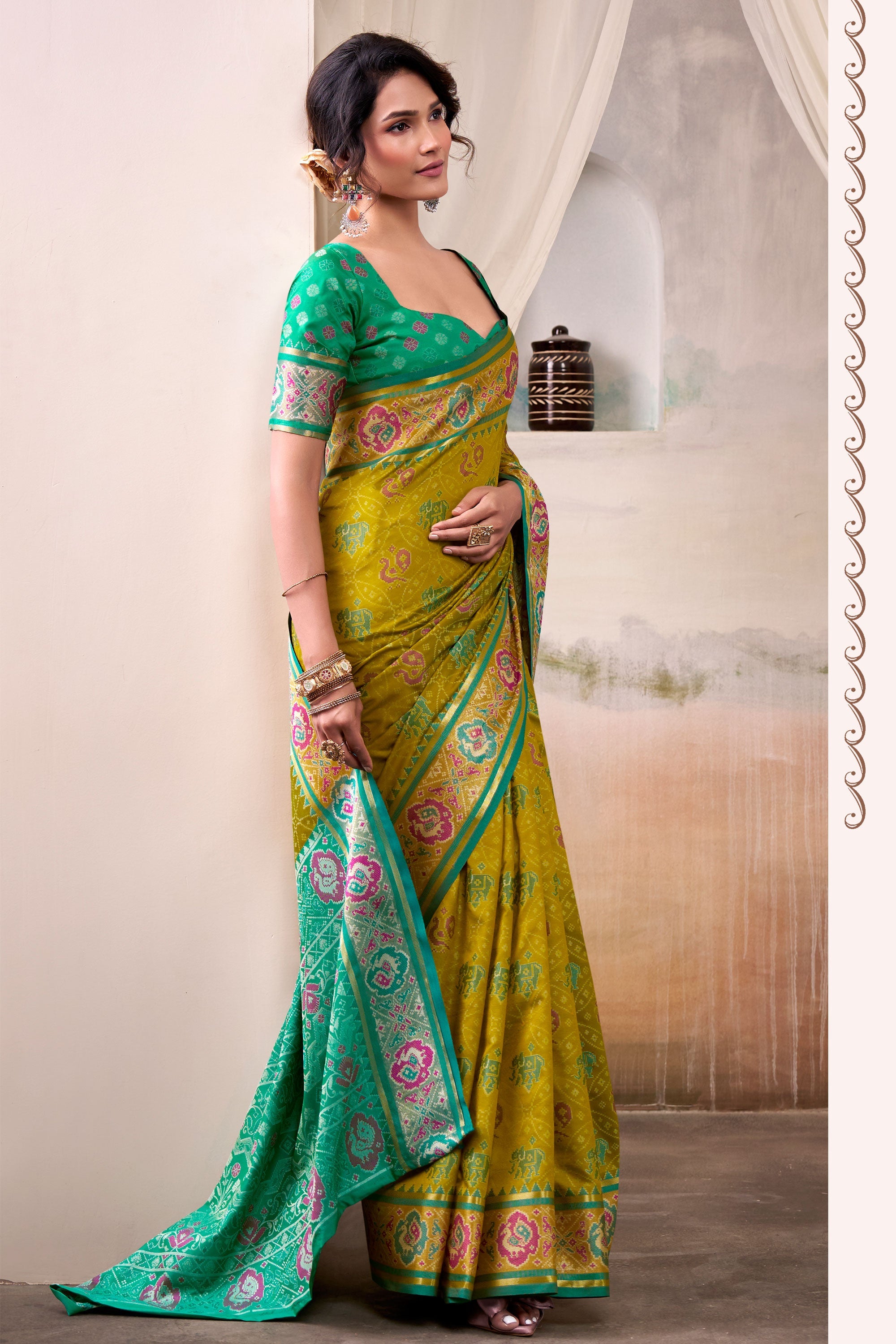 Fabulous Festive Wear Mehendi Green Color Patola Silk Saree