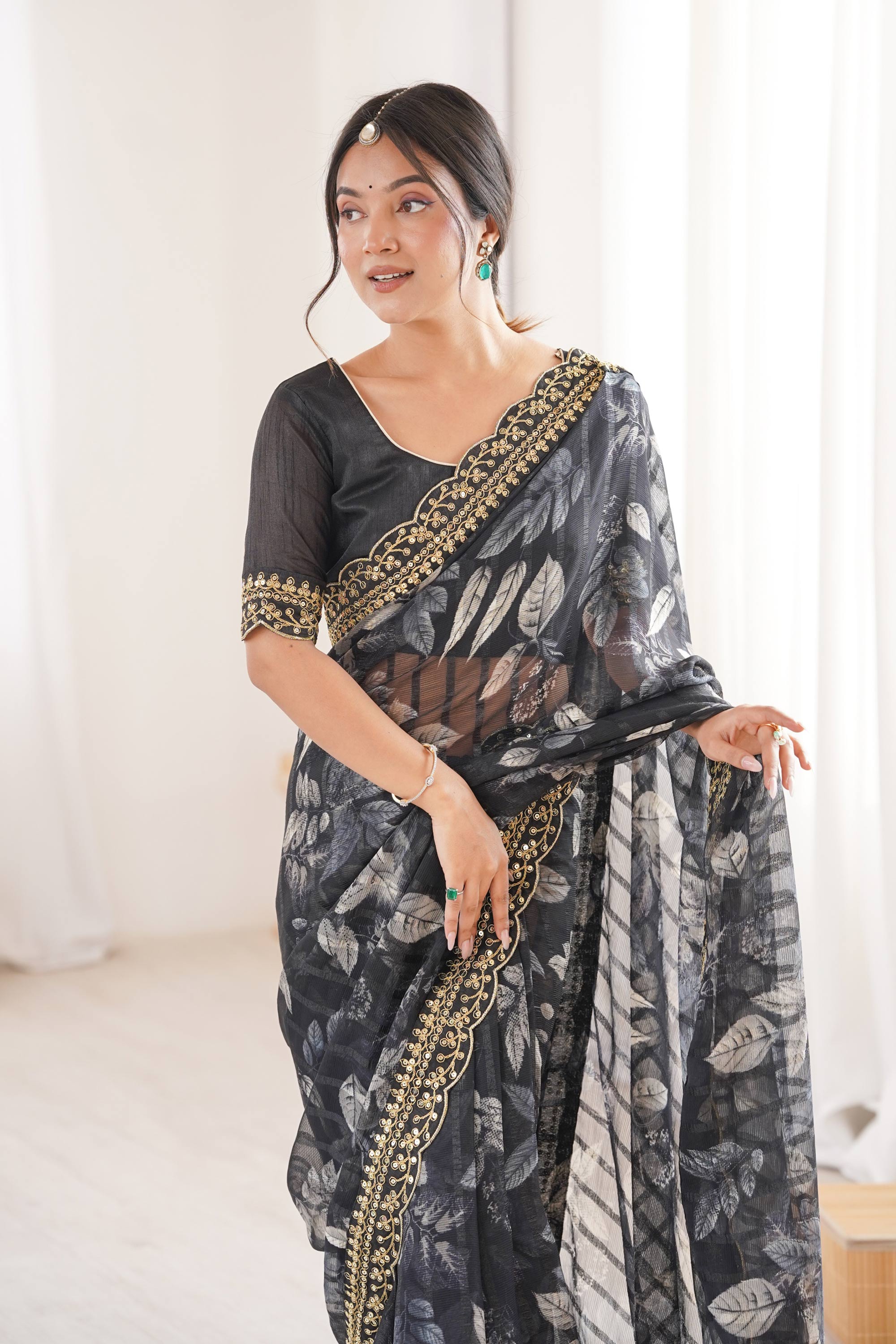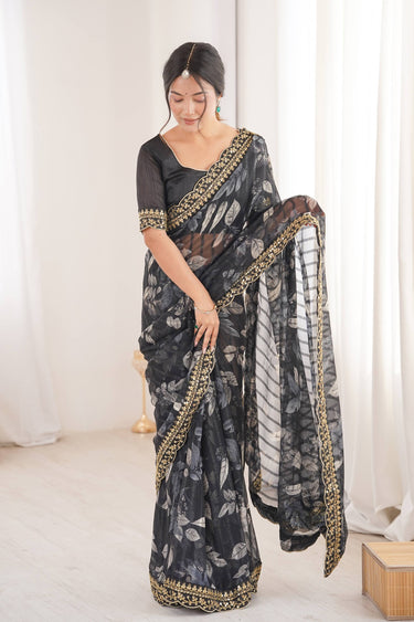 Fancy Fabric Printed Black Casual Wear Saree
