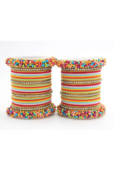 Fancy Handmade Silk Thread And Pearl Beaded Multi Color Designer Bangles Set