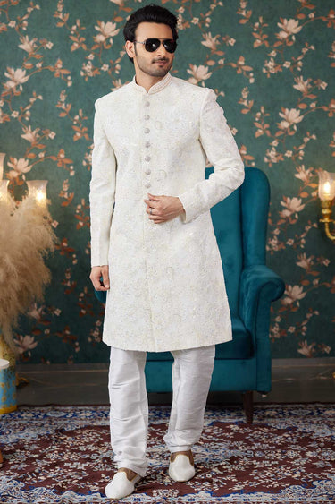 Fantastic Cream Color Art Silk Fabric Wedding Wear Sherwani For Men