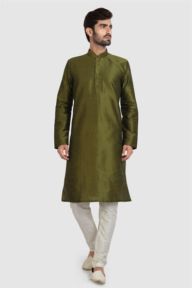 Fascinate Mehendi Green Color Art Silk Fabric Readymade Kurta Pyjama For Men